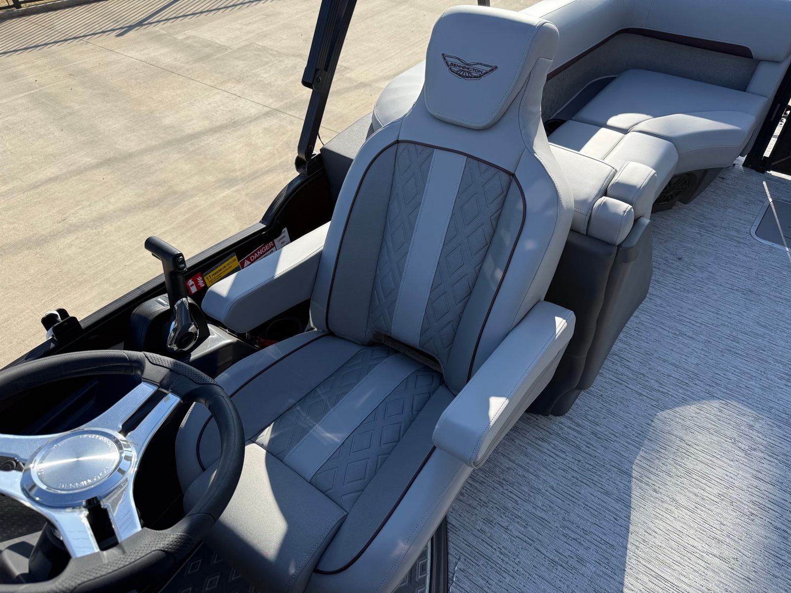 The Bennington 24 MFB ESP is packed with features that enhance your boating experience. Its spacious deck layout provides plenty of room for relaxing, socializing, and enjoying the scenery. The innovative design maximizes comfort and convenience, with plush seating and ample space for movement. The pontoon’s construction reflects Bennington’s commitment to durability and safety, ensuring peace of mind every time you set out on the water.Special features of the Bennington 24 MFB ESP include its exclusive ESP (Elliptical Sport Package) hull design, which delivers superior stability and smooth handling. This advanced hull technology allows for better performance at higher speeds and improved maneuverability, making it ideal for both leisurely cruises and more spirited adventures. The boat’s modern styling and attention to detail are evident throughout, from the elegant lines to the high-quality finishes.