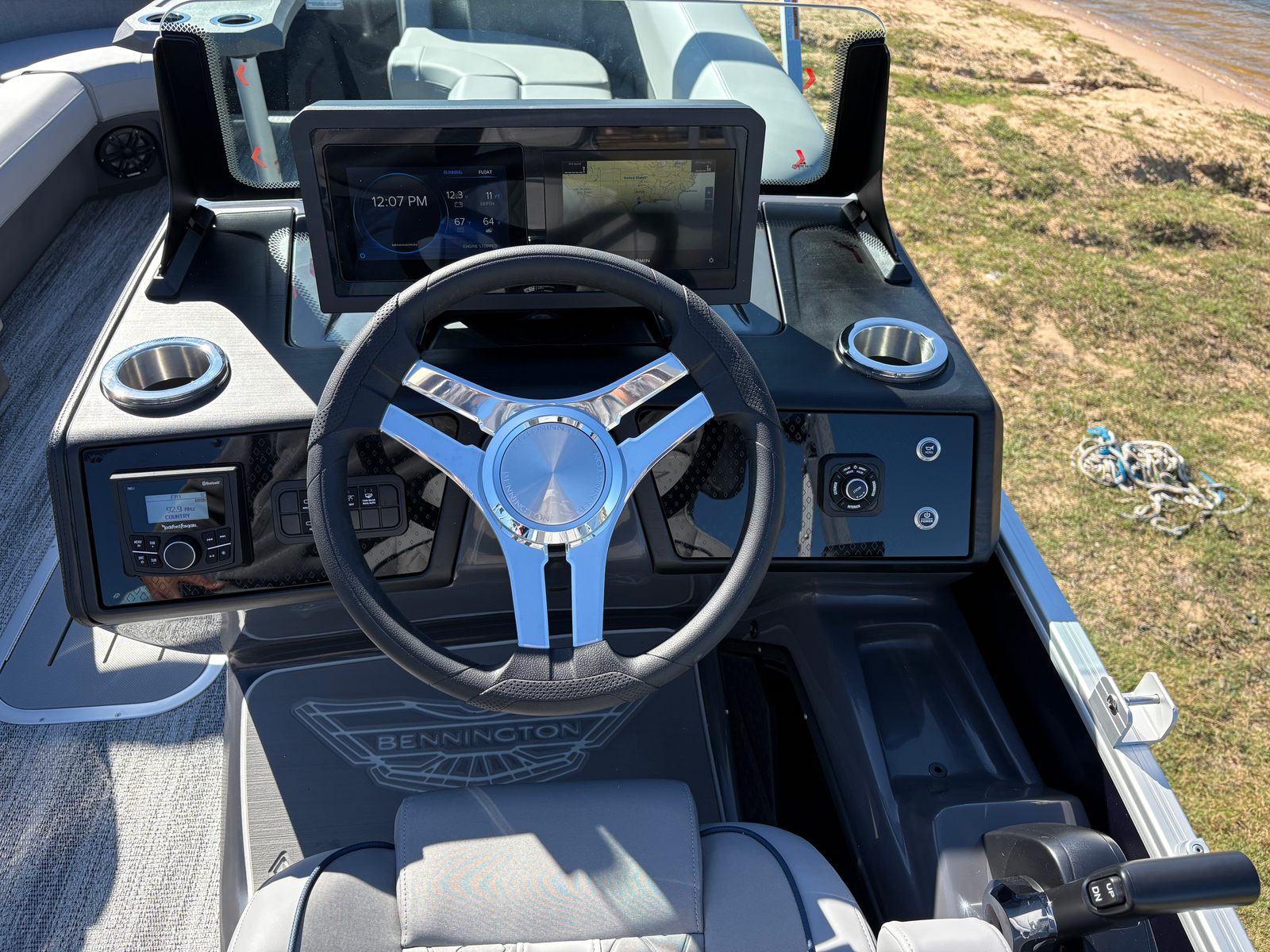 The 2026 Bennington 24 MFB SPS Plus is packed with special features that set it apart from other pontoon boats for sale. The RGB Control M Series lighting system allows you to customize the ambiance onboard, creating the perfect mood for any occasion. Toekick lights add a subtle, stylish glow to the deck, enhancing both safety and aesthetics during evening cruises.For music lovers, the Rockford Fosgate M1 Lighted Speakers deliver premium sound quality, ensuring your favorite tunes sound incredible whether you are anchored or underway. Illuminated cupholders add a touch of sophistication and convenience, making it easy to keep your favorite beverages close at hand, even after sunset.The elevated console with Pocket Mythos offers enhanced visibility and a commanding view of the water, while the stainless steel rub rail provides added protection and durability. The Yamaha stainless steel fuel separator is designed for optimal engine performance and longevity, giving you peace of mind on every journey.