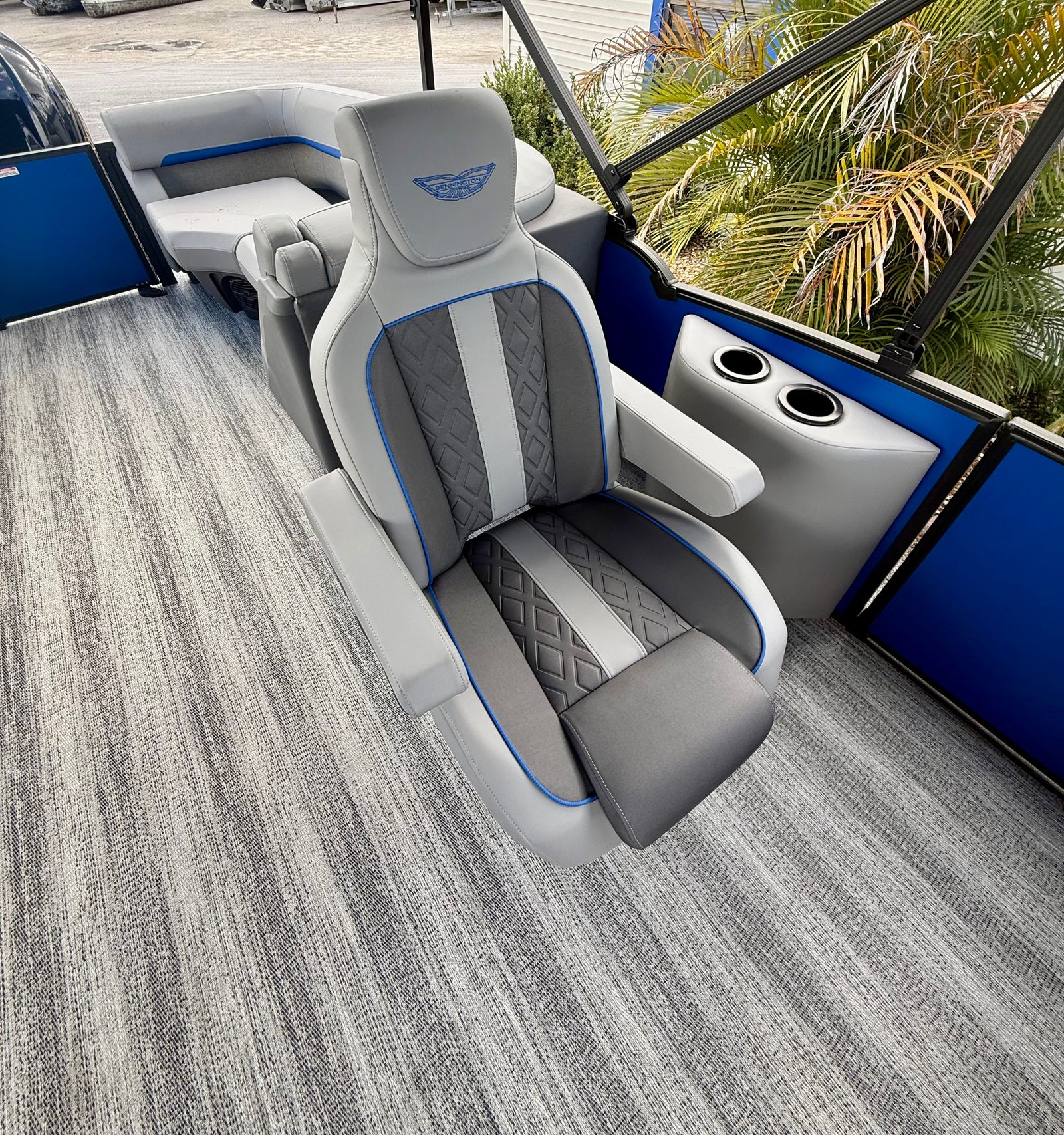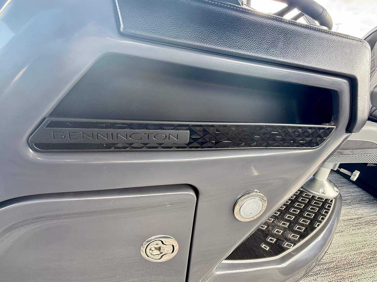 The 2026 Bennington 24 MFB SPS comes loaded with special features that set it apart from other pontoon boats for sale. The Sunshine Package infuses the deck with a bright, inviting atmosphere, perfect for sunny days on the water. The elevated console with Pocket Mythos provides a commanding view and easy access to controls, enhancing both safety and convenience. The base furniture from the M Series offers plush seating and ergonomic design, ensuring every passenger enjoys maximum comfort. The interior is adorned with Zebrawood Matte Slate accents, adding a touch of modern elegance to the overall aesthetic.For those who appreciate style and durability, the canvas in Midnight Black and Shoreline Grey creates a striking visual contrast, while the double 16.5-foot black bimini offers generous shade and protection from the elements. The black rub rail insert not only adds to the boat’s sleek appearance but also provides extra protection during docking and mooring. Every detail of the 24 MFB SPS is meticulously crafted to enhance your time on the water.