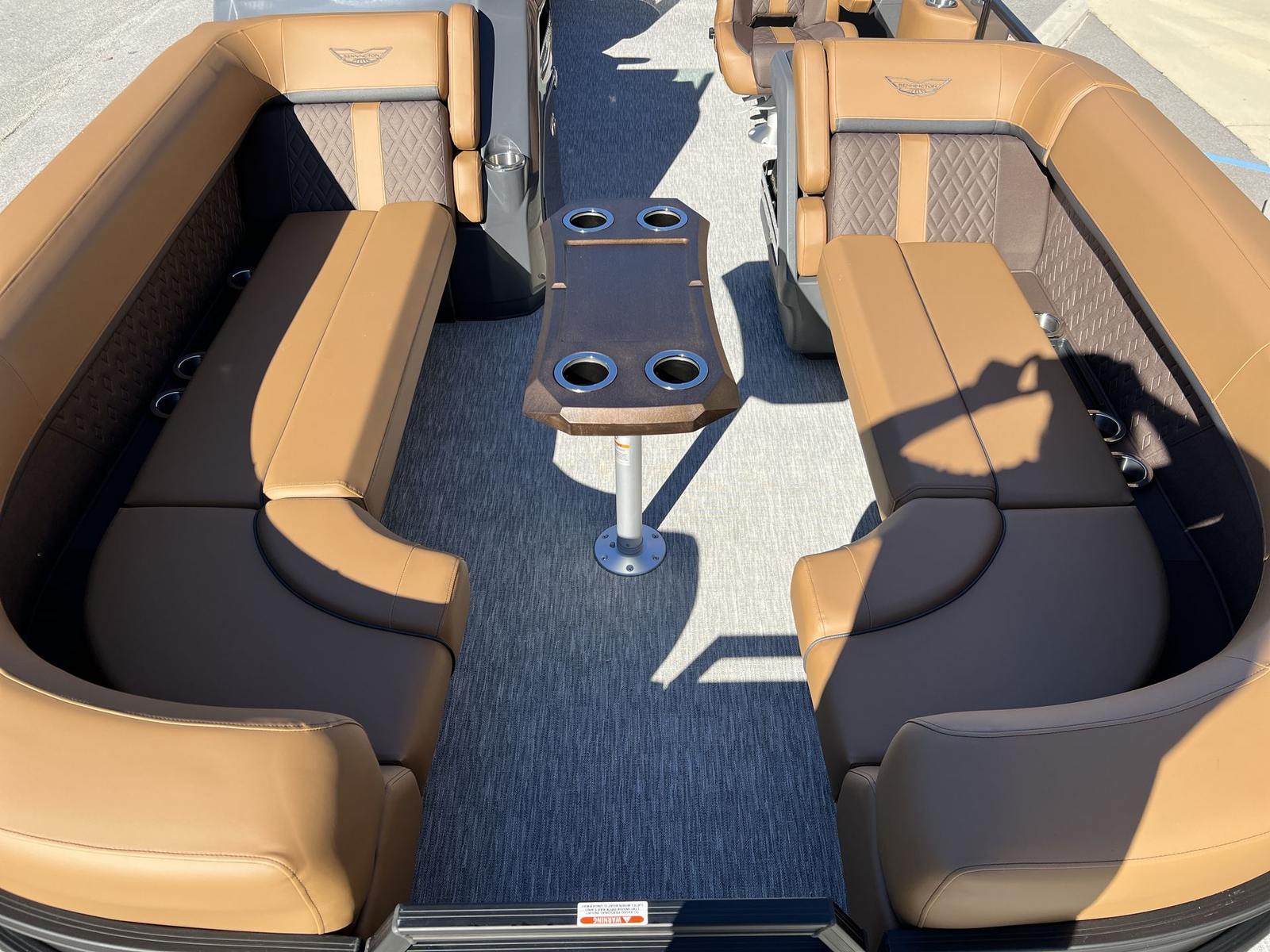 The Bennington 24 MFB SPS is a new pontoon boat that stands out with its impressive length of 26.25 feet, offering ample space for relaxation, entertainment, and memorable outings on the water. Crafted for the 2026 model year, this boat showcases Bennington’s renowned commitment to quality, innovation, and style. Its sleek profile and contemporary features make it a top choice for those seeking a pontoon boat for sale that combines elegance with practicality.
