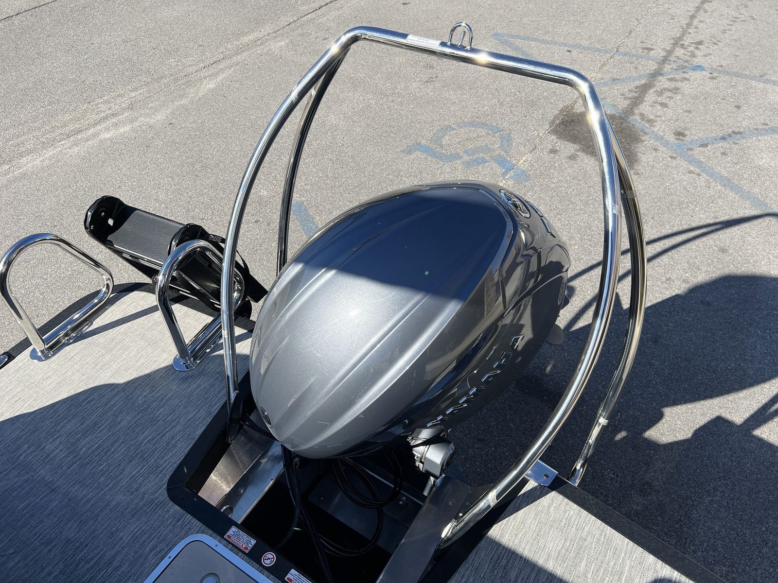 Powering this Bennington pontoon is the robust Yamaha F200XD engine, delivering a remarkable 200 horsepower. This engine ensures smooth acceleration, reliable performance, and efficient cruising, whether you’re gliding across calm lakes or exploring winding rivers. The Yamaha F200XD is celebrated for its quiet operation and fuel efficiency, allowing you to enjoy longer journeys with fewer stops. With this level of horsepower, the Bennington 24 MFB SPS offers plenty of excitement for water sports enthusiasts, while maintaining the gentle ride and stability that pontoon boats are known for.