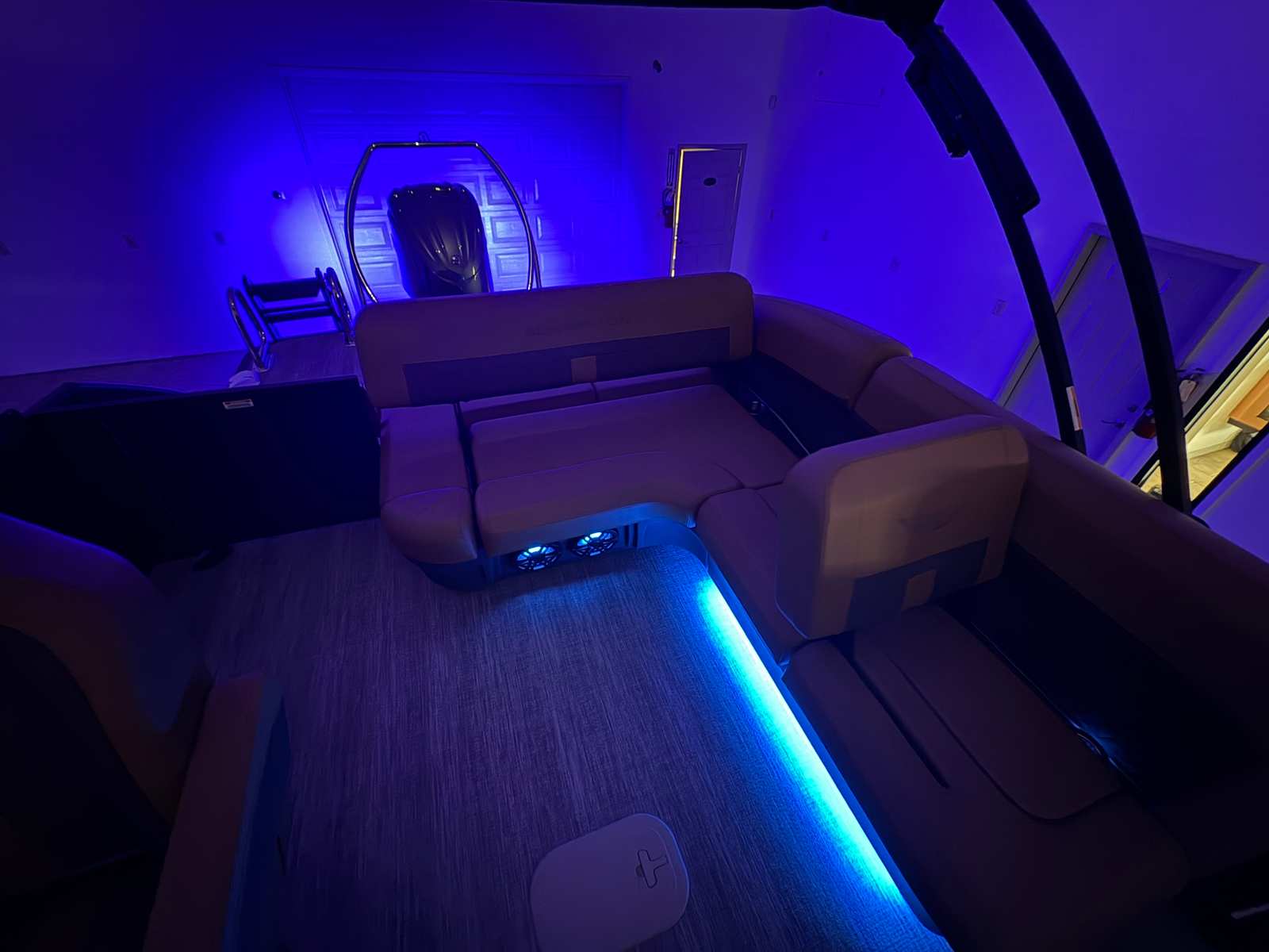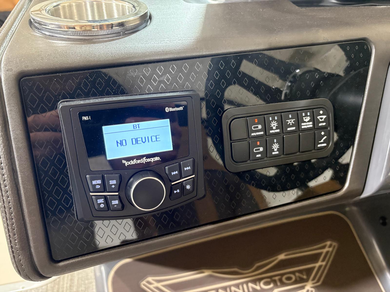 The Bennington 24 MSB ESP is packed with special features that set it apart from other pontoon boats for sale. The electric power top curved Bimini (12B S/M Blk) provides convenient shade and protection from the sun, while the midnight black canvas adds a touch of sophistication to the overall aesthetic. Aft pop-up cleats make docking and securing the boat a breeze, enhancing both safety and convenience. The RGB Control M Series allows you to customize the onboard lighting to match your mood or occasion, creating a vibrant atmosphere for evening cruises or celebrations.Entertainment is at the forefront with Rockford Fosgate M1 lighted speakers, delivering high-quality sound and immersive audio experiences. The 7" Vivid UX touchscreen display puts navigation and system controls at your fingertips, ensuring that every aspect of your journey is easily managed. The Blackout Luxe Package adds a bold, modern look, making this Bennington boat for sale a true head-turner on the water.