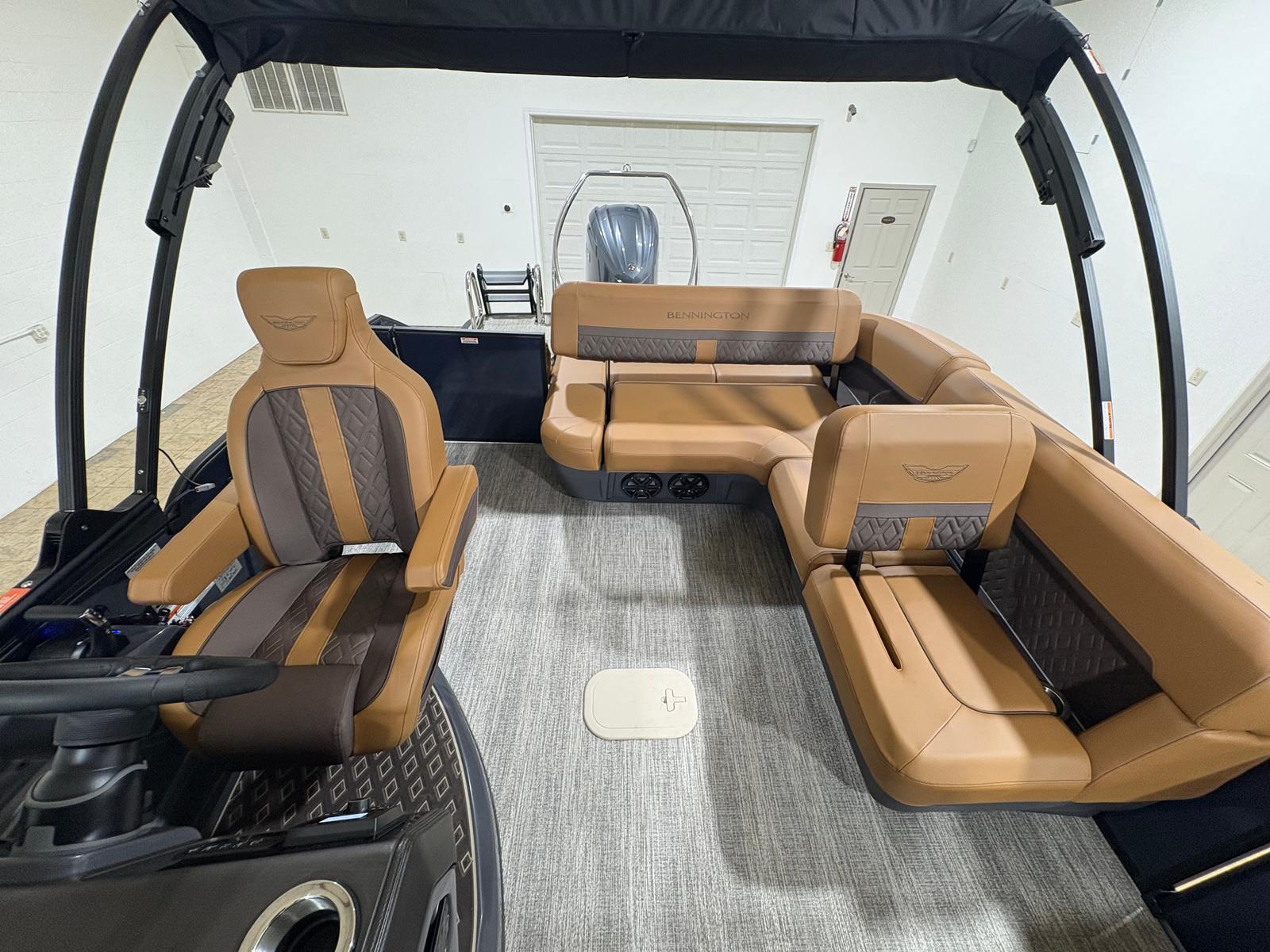 Practicality meets luxury in the Bennington 24 MSB ESP. The aft pop-up cleats simplify the docking process, making it easy to secure your boat at any location. The ESP Performance Package enhances fuel efficiency and handling, so you can spend more time enjoying the water and less time worrying about refueling or maneuvering. The spacious layout provides plenty of room for gear, coolers, and personal items, ensuring that everything you need for a day of fun is always within reach.The midnight black canvas not only adds style but also offers protection from the elements, keeping your boat looking pristine. The power hydraulic assist steering makes navigation effortless, even in challenging conditions, while the advanced touchscreen display keeps you informed and in control. Every feature is designed to make ownership easy, enjoyable, and worry-free.