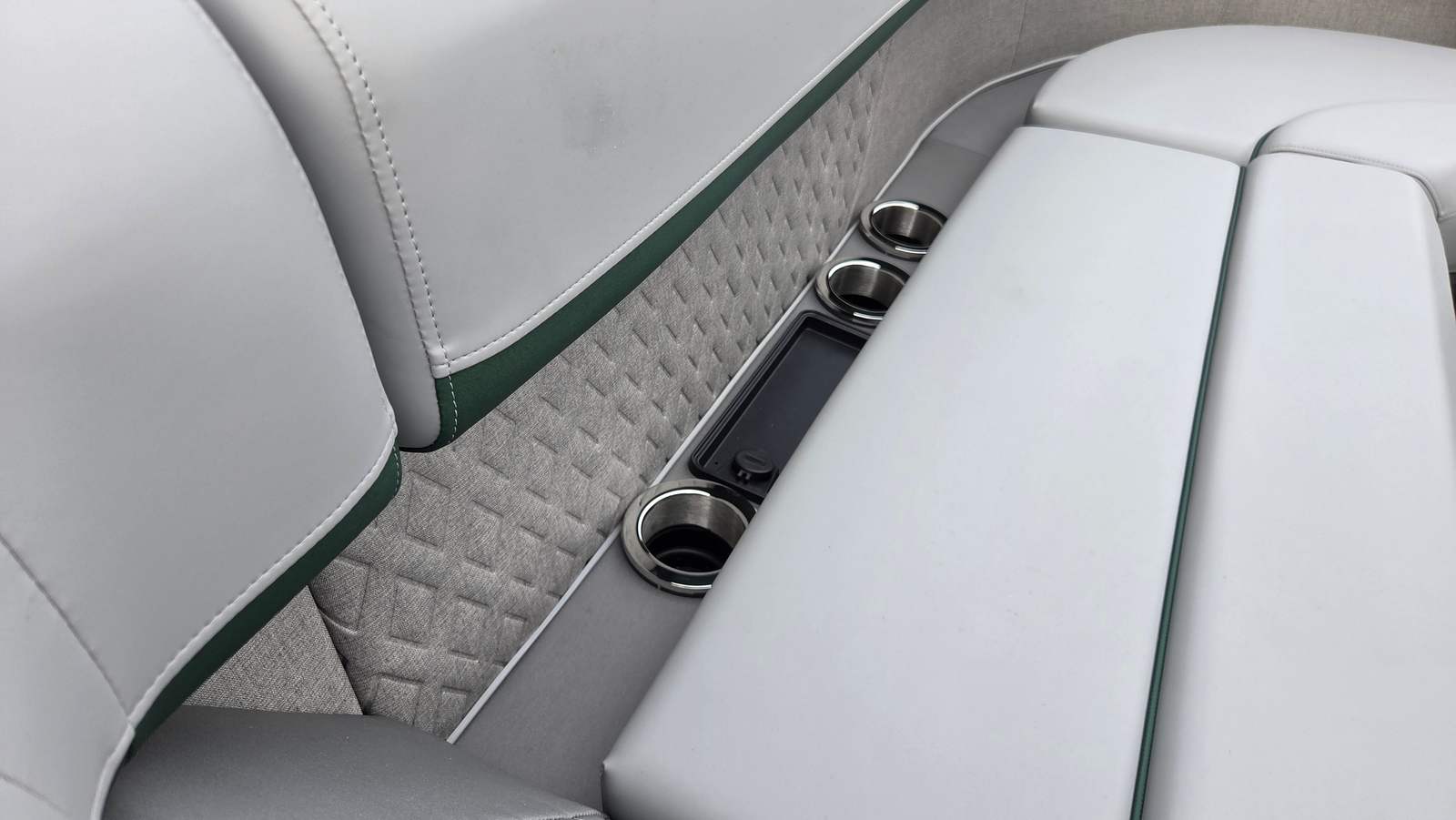 The Bennington 24 MSL SPS Plus is loaded with features that elevate your on-water experience. The RGB Control M Series lighting system allows you to set the perfect mood, while the Toekick Lights (2-62") add a subtle, stylish glow for evening cruises. Entertainment is taken to the next level with six Rockford Fosgate M1 Lighted Speakers, delivering crystal-clear sound and vibrant illumination for your favorite playlists. Illuminated cupholders keep your beverages secure and visible, even after sunset, and the Elevated Console with Pocket Mythos provides a commanding view and convenient storage for your essentials. The addition of lumbar lighting enhances comfort and ambiance, making every seat the best in the house. For sun protection and style, the Bimini - Curved M/LXS No Light Blk offers ample shade without compromising the boat’s sleek profile.