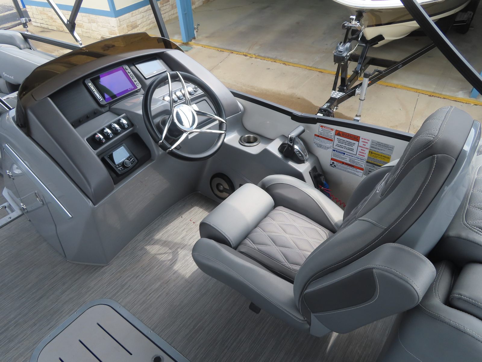 Powering this Bennington pontoon is a robust single engine boasting an impressive 300 horsepower. This powerful setup ensures smooth acceleration, responsive handling, and reliable performance whether you’re cruising across the lake or towing water toys for added excitement. With just 80 engine hours, you can trust that this pontoon boat for sale has plenty of life left to deliver exhilarating rides and dependable operation. The combination of horsepower and Bennington’s renowned hull design means you’ll enjoy a stable, comfortable ride even in choppy conditions, making every outing a pleasure.
