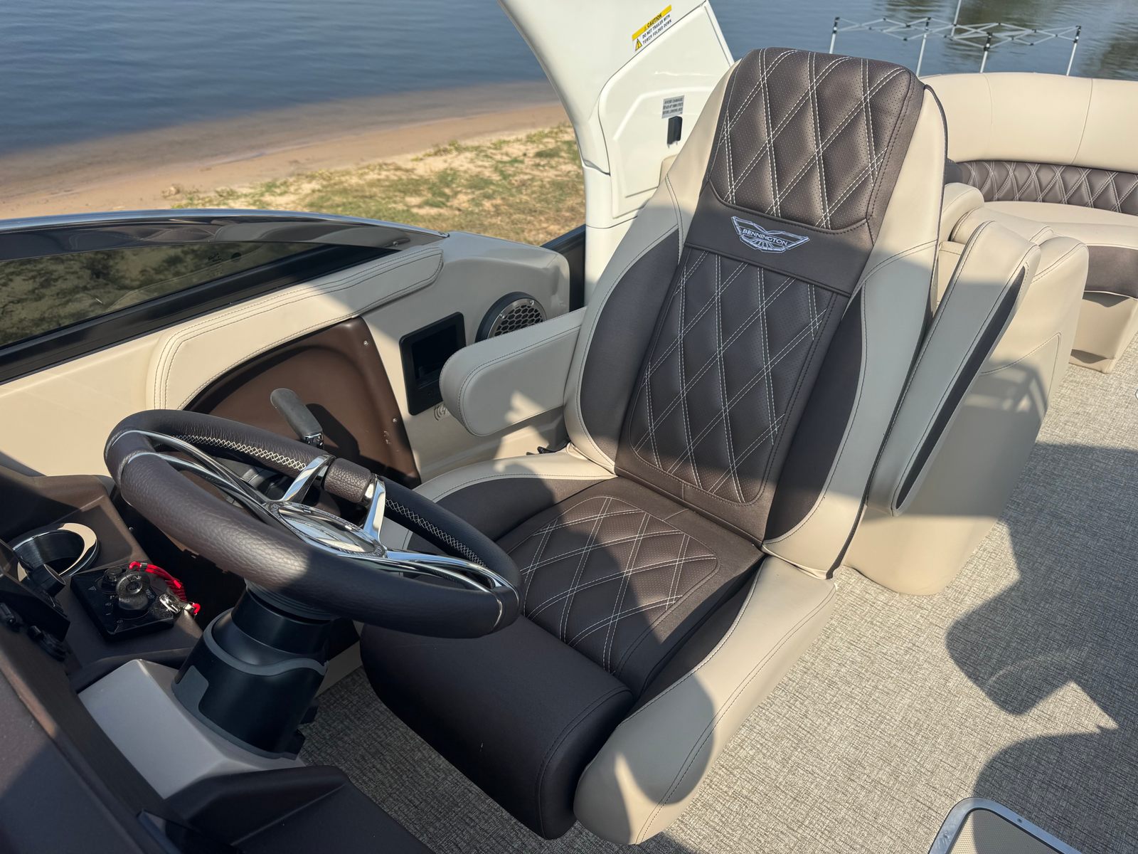 Beyond its luxurious amenities, the Bennington 25 Qfbwa ESP pontoon boat is designed for practical enjoyment and convenience. The spacious layout provides plenty of room for storing gear, water toys, and personal items, ensuring you’re always prepared for a day on the water. The advanced steering system simplifies docking and maneuvering, making it easy for boaters of all experience levels to handle the vessel confidently.Fuel efficiency is enhanced by the Yamaha Offshore engine’s modern engineering, allowing you to spend more time cruising and less time refueling. The durable construction and high-quality materials ensure long-lasting performance, so you can enjoy worry-free adventures season after season. Whether you’re planning a fishing trip, a family picnic, or a relaxing day of sunbathing, this pontoon boat adapts to your needs and delivers exceptional versatility.