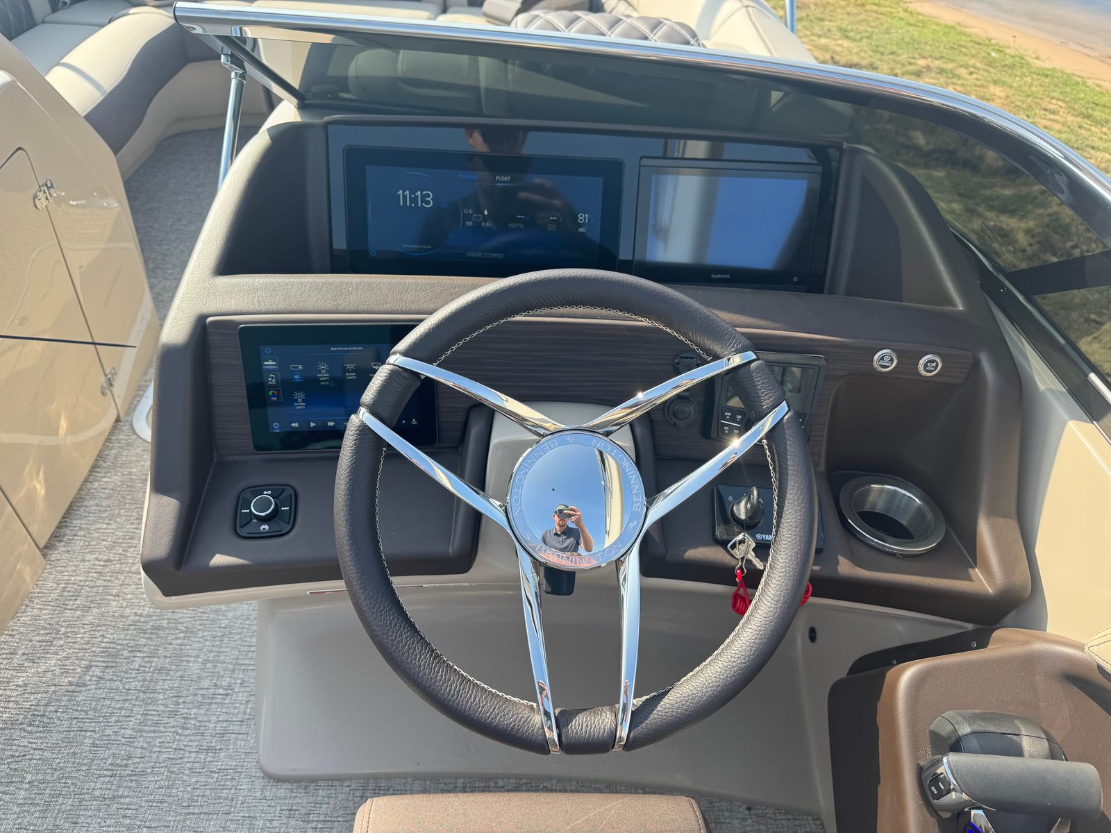 Step aboard the Bennington 25 Qfbwa ESP and discover a world of luxury and innovation. The special features of this pontoon boat are designed to enhance your time on the water, offering both style and functionality. The Removable Flag Pole with American Flag adds a patriotic touch, perfect for holiday celebrations or everyday pride. Enjoy a vibrant atmosphere with RGB Toe Kick Lighting and Illuminated Cupholders, creating a dynamic ambiance for evening cruises and social gatherings.Underwater Lighting not only adds a dramatic flair but also improves visibility during nighttime adventures. The Blackout Logos give the boat a sleek, modern look, while the Panel - Smooth Metallic Sorre finish provides a sophisticated aesthetic that turns heads at every marina. For music lovers, the Rockford Fosgate audio system is a true highlight. Featuring 6.5" M2 Speakers, 8" M2 Speakers, a powerful 10" M2 Subwoofer, and Dual PM Punch Amplifier Upgrade, this setup delivers crystal-clear sound and deep bass throughout the boat. The Rockford Fosgate PMX-1R Head Unit Remote with Sirius Satellite Radio ensures you have access to your favorite tunes and channels, making every journey more enjoyable.