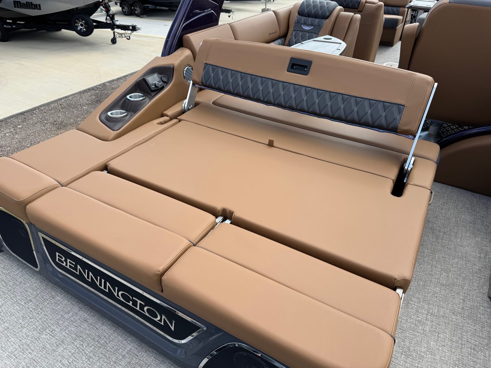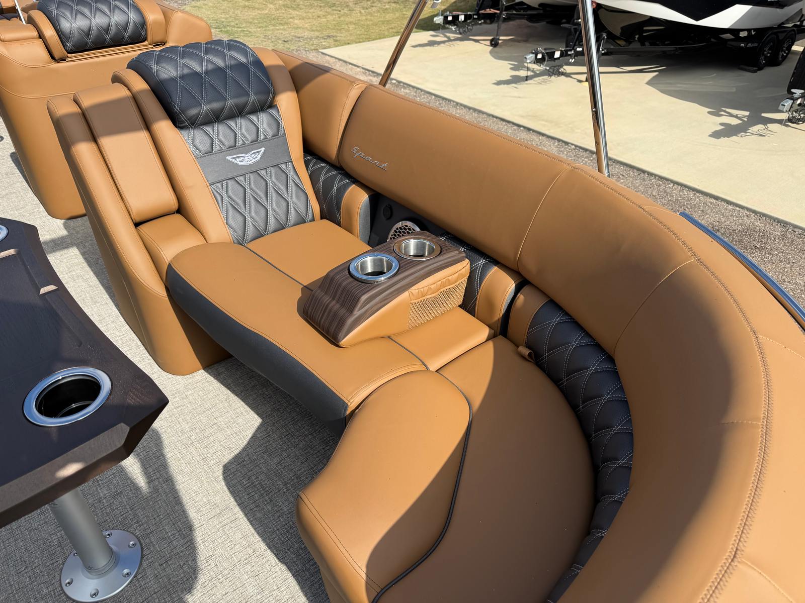 The Bennington 25 Qsba ESP is packed with special features that enhance both its aesthetic appeal and onboard experience. The Power Cladded Sport Arch adds a bold, sporty look while providing functional support for accessories and lighting. Illuminated cupholders and underwater lighting create a vibrant atmosphere for evening cruises, while toekick lights add a touch of elegance and safety. The blackout logos give the boat a sleek, modern appearance that stands out on the water.Entertainment is taken to the next level with a premium Rockford Fosgate audio system, including six 6.5" M2 speakers throughout the boat and two additional speakers on the arch. The sound system is further enhanced by a 10" M2 subwoofer, a PM Punch amplifier upgrade, a Rockford Fosgate 10" M1 subwoofer, and a dual M2 amplifier upgrade, ensuring crystal-clear sound and powerful bass for your favorite music. The removable flag pole with an American flag adds a patriotic touch, perfect for holiday celebrations or showing your pride on the water.