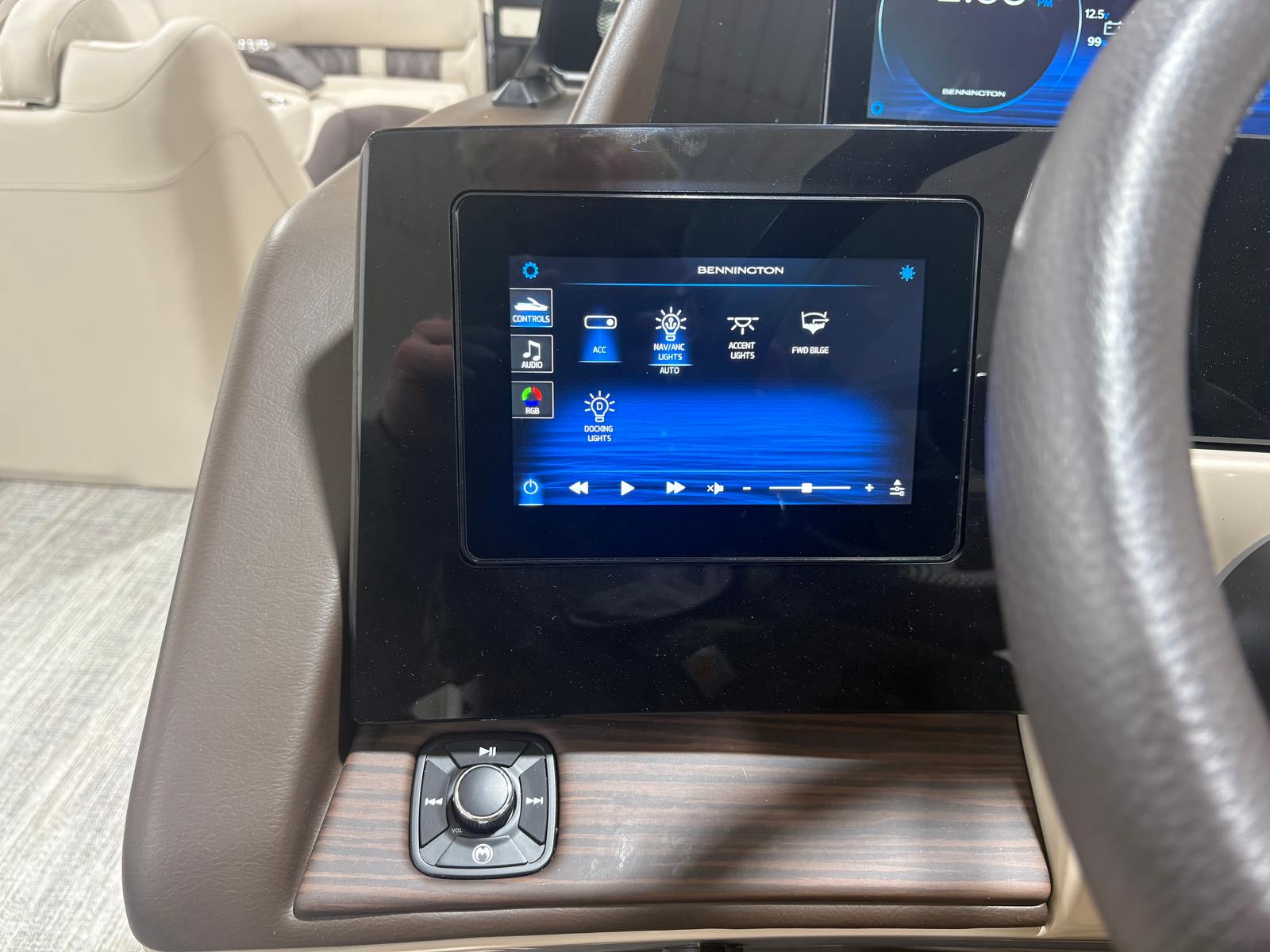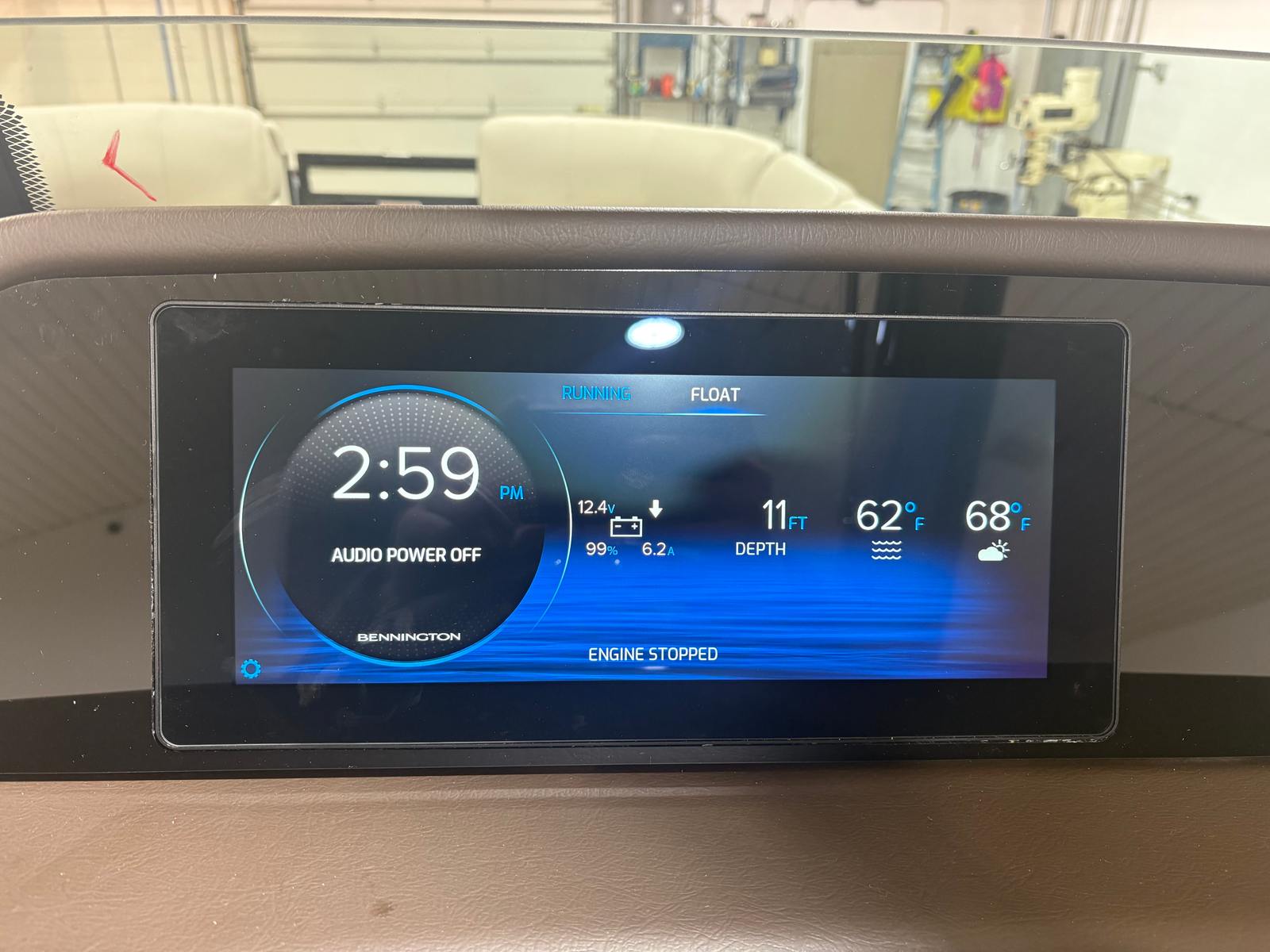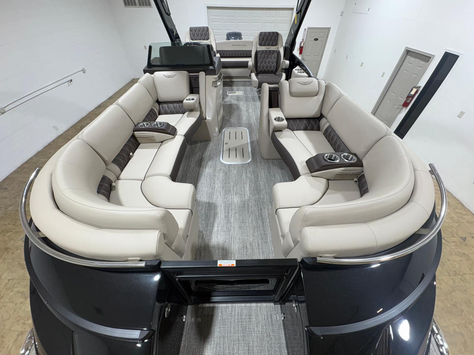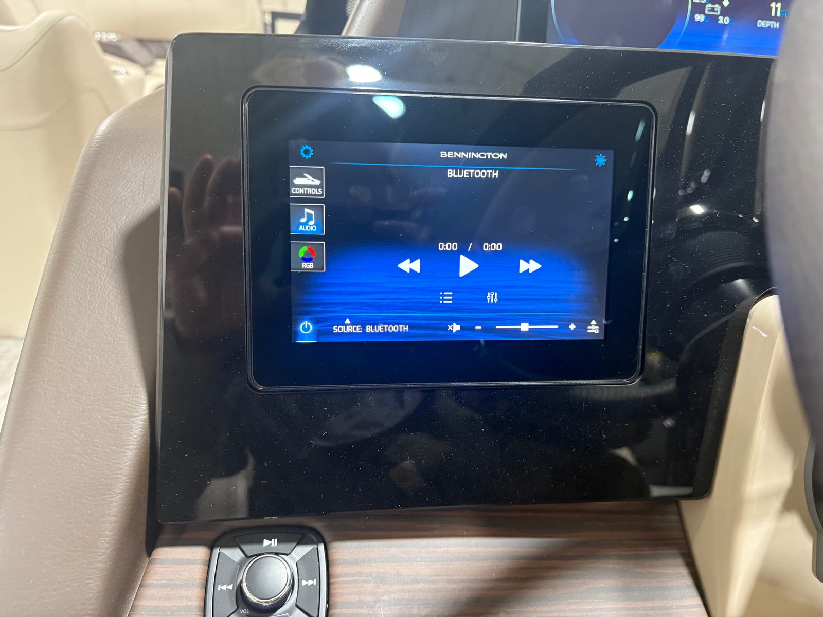 Step aboard and immerse yourself in a world of comfort and entertainment. The Bennington 25 Qsba ESP is equipped with a host of special features that set it apart from other pontoon boats for sale. Enjoy the ambiance created by illuminated cupholders (six in total), underwater lighting, and strategically placed toekick lights in varying lengths (1-41", 1-62", and 2-72"). These lighting elements not only enhance the boat’s aesthetic appeal but also provide practical illumination for evening cruises and social gatherings.The interior is a showcase of luxury, featuring Zebrawood Matte Beige accents and base pillowtop diamond-stitched upholstery (Q) for superior comfort and style. The interior accent in perforated espresso adds a touch of sophistication, creating an inviting atmosphere for passengers. Blackout logos give the boat a modern, sleek look that complements its overall design.For music lovers, the Bennington 25 Qsba ESP boasts a premium audio system with Rockford Fosgate 6.5" M2 speakers (six on the boat and two on the arch), a powerful 10" M2 subwoofer, and a PM Punch amplifier upgrade. Whether you’re hosting a party or enjoying a quiet sunset cruise, the sound quality ensures every moment on board is accompanied by your favorite tunes in crystal-clear detail.