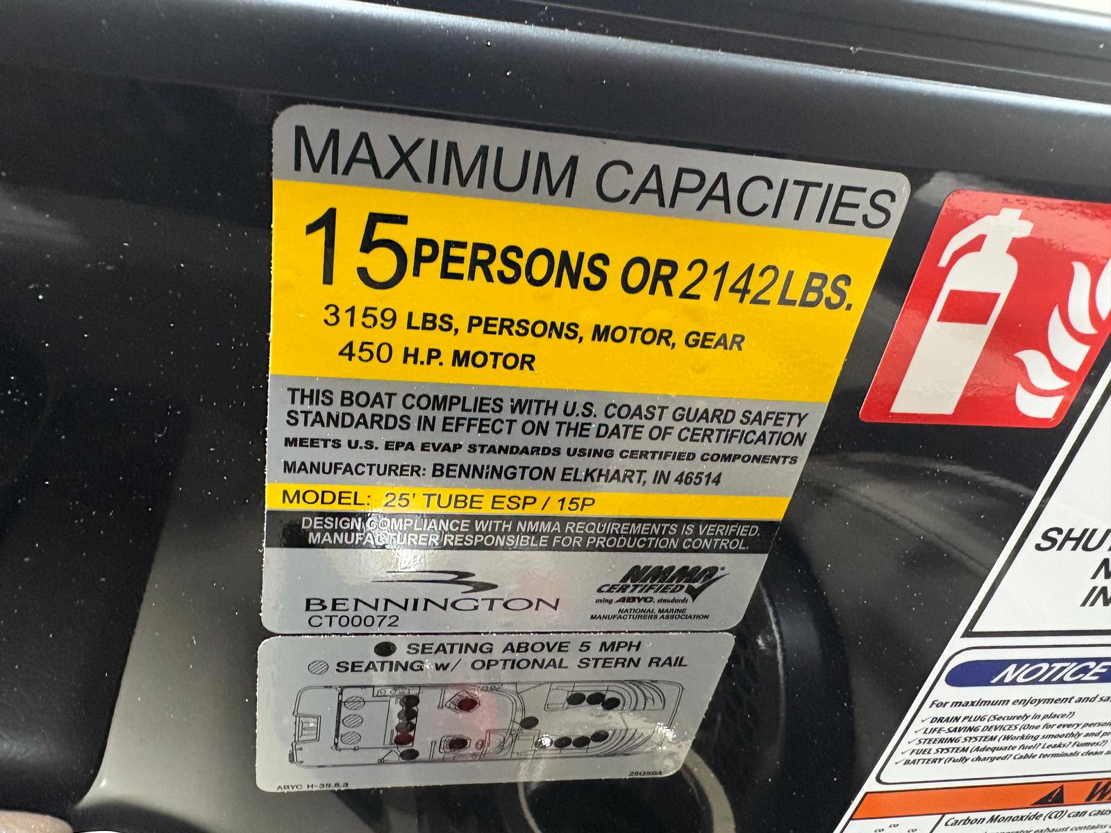 The Bennington 25 Qsba ESP is as practical as it is luxurious. Its generous length provides ample storage space for gear, water toys, and personal items, keeping the deck clutter-free and organized. The Yamaha Integrated Steering Pre-Rig makes docking and maneuvering simple, even for those new to boating. With its efficient engine and streamlined design, you can enjoy extended outings without worrying about excessive fuel consumption.This pontoon boat is perfect for a variety of activities, from leisurely cruises and sunbathing to lively gatherings and watersports. The advanced audio system transforms the boat into a floating entertainment center, while the comfortable seating and spacious layout make it easy to host guests or relax with loved ones. The combination of style, performance, and practicality makes the Bennington 25 Qsba ESP a versatile choice for any boating enthusiast.