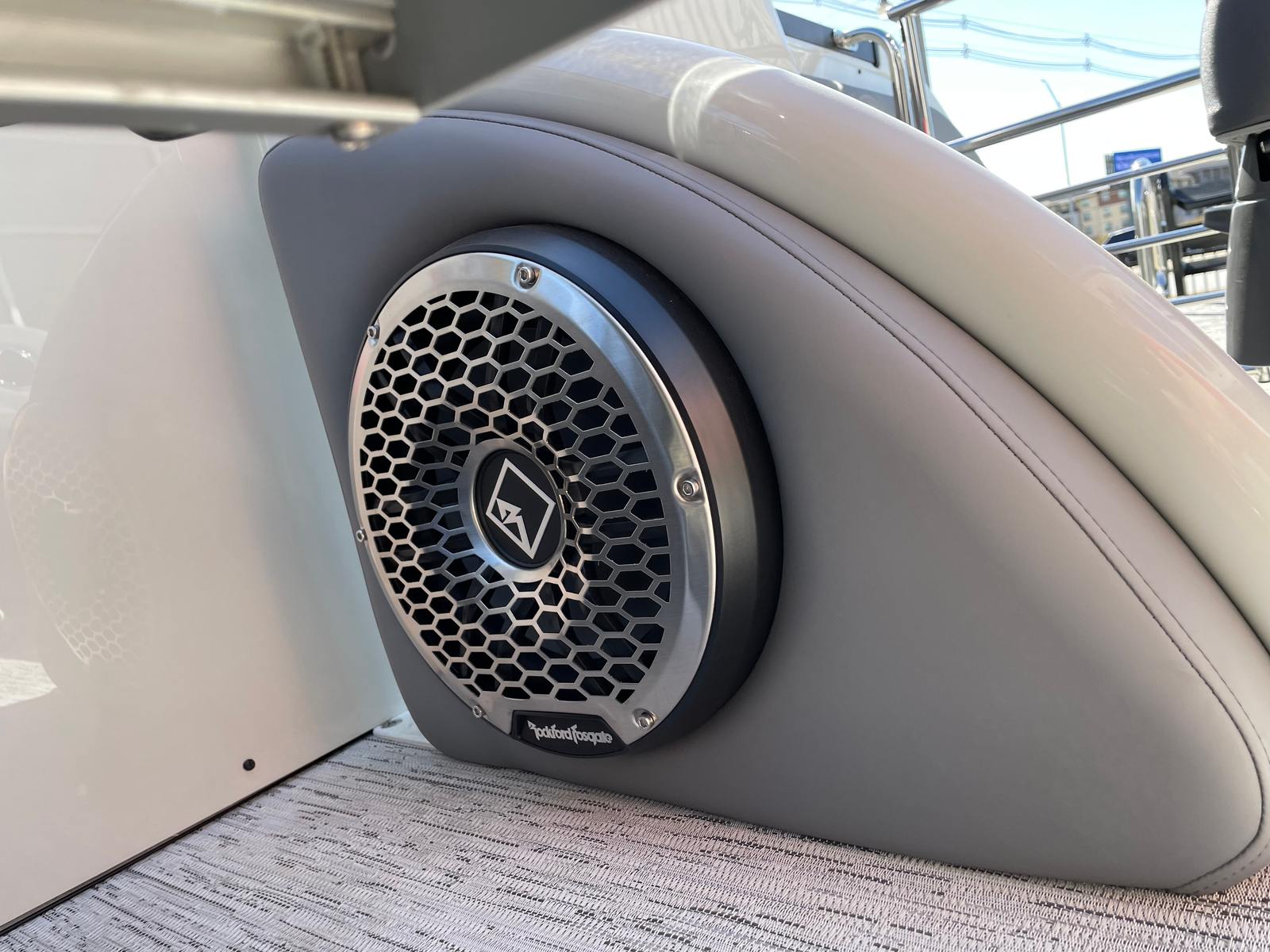 - Rockford Fosgate 6.5" M2 Speakers (6 boat, 2 arch), 10" M2 Subwoofer, PM Punch Amplifier Upgrade