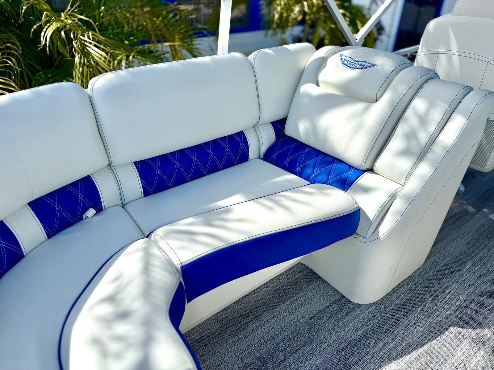 At the heart of this Bennington pontoon is a powerful 300 HP 4 Stroke V6 25 IN engine, delivering robust performance and smooth acceleration for a thrilling ride. The Yamaha Mechanical Pre-Rig ensures seamless integration and reliable operation, while the advanced steering system with power hydraulic assist provides effortless maneuverability, even in tight spaces or challenging conditions. Whether you are cruising at a leisurely pace or powering across the water, the 25 RFB ESP offers a responsive and exhilarating driving experience that sets it apart from other pontoon boats for sale.