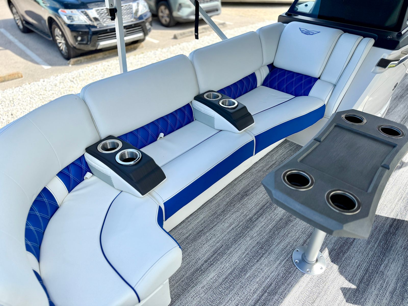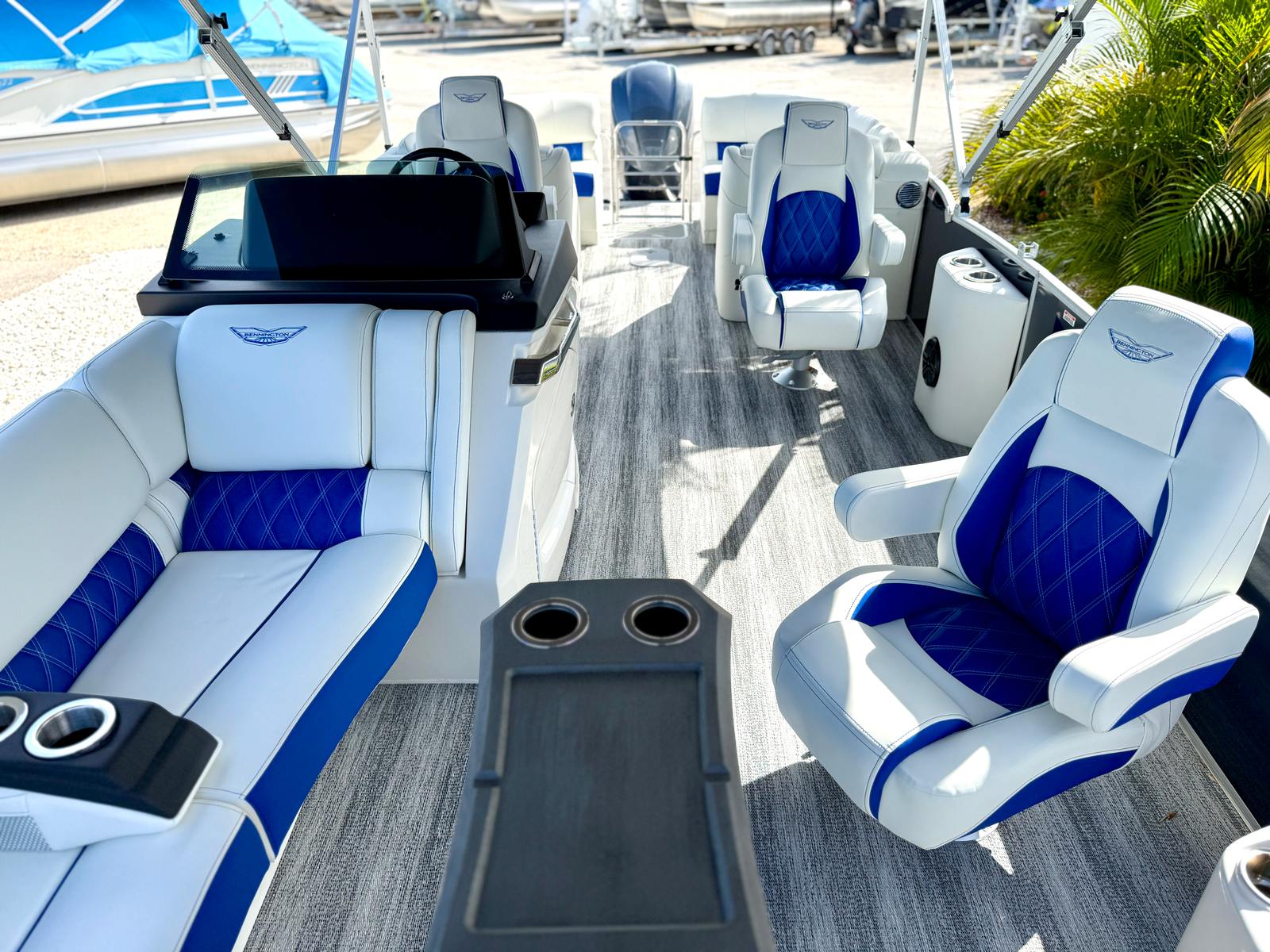 The versatility of the Bennington 25 RFB ESP makes it the perfect choice for a wide range of activities and occasions. Imagine leisurely family outings, where children can play safely on the spacious deck while adults relax and unwind. For fishing enthusiasts, the stable platform and generous space provide an excellent base for casting lines and reeling in the catch of the day.If you love entertaining, the luxurious seating and ambient lighting set the stage for unforgettable gatherings, from casual barbecues to elegant cocktail parties on the water. The powerful engine and responsive handling also make this pontoon ideal for exploring new waterways, discovering hidden coves, or embarking on weekend getaways with loved ones.