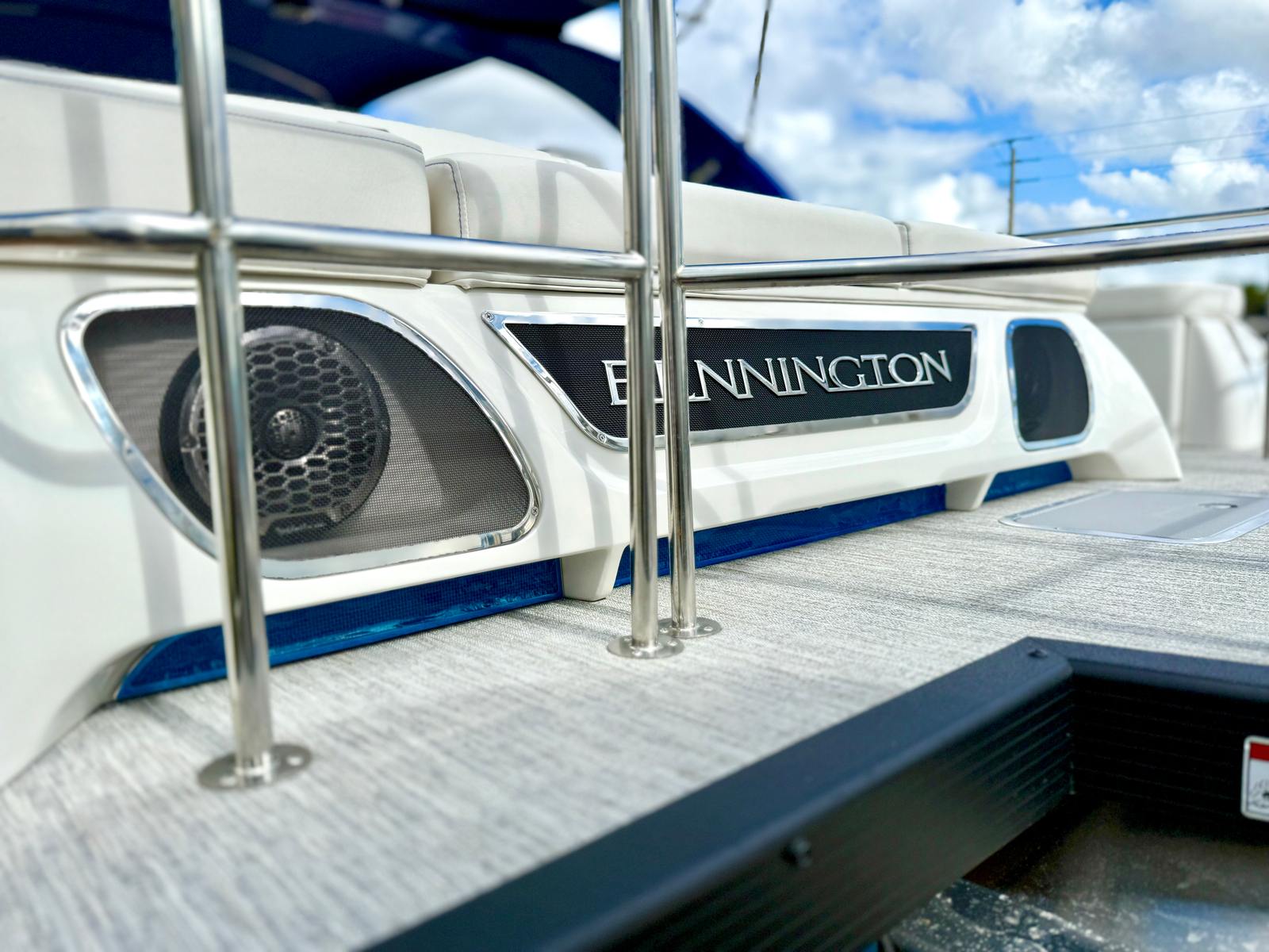 The Bennington 30 QXSBWAX2 ESP is loaded with premium features designed to enhance every aspect of your time on the water. The Sunshine Package brings a bright and inviting atmosphere to the deck, perfect for sunny days and warm evenings. RGB Toe Kick Lighting, illuminated cupholders, and exterior side lighting create a vibrant and customizable ambiance, allowing you to set the mood for any occasion. Underwater lighting adds a dramatic touch, illuminating the water beneath and around your pontoon for a truly unique experience.For music lovers, the Rockford Fosgate 6.5" M2 speakers, 10" M2 subwoofer, and PM Punch Amplifier Upgrade deliver crystal-clear sound and deep bass, transforming your pontoon into a floating concert venue. The blackout logos and Arctic Ice White finish provide a sleek, modern look that turns heads wherever you go. With thoughtful details like seven illuminated cupholders and integrated lighting throughout, every moment on board feels special.