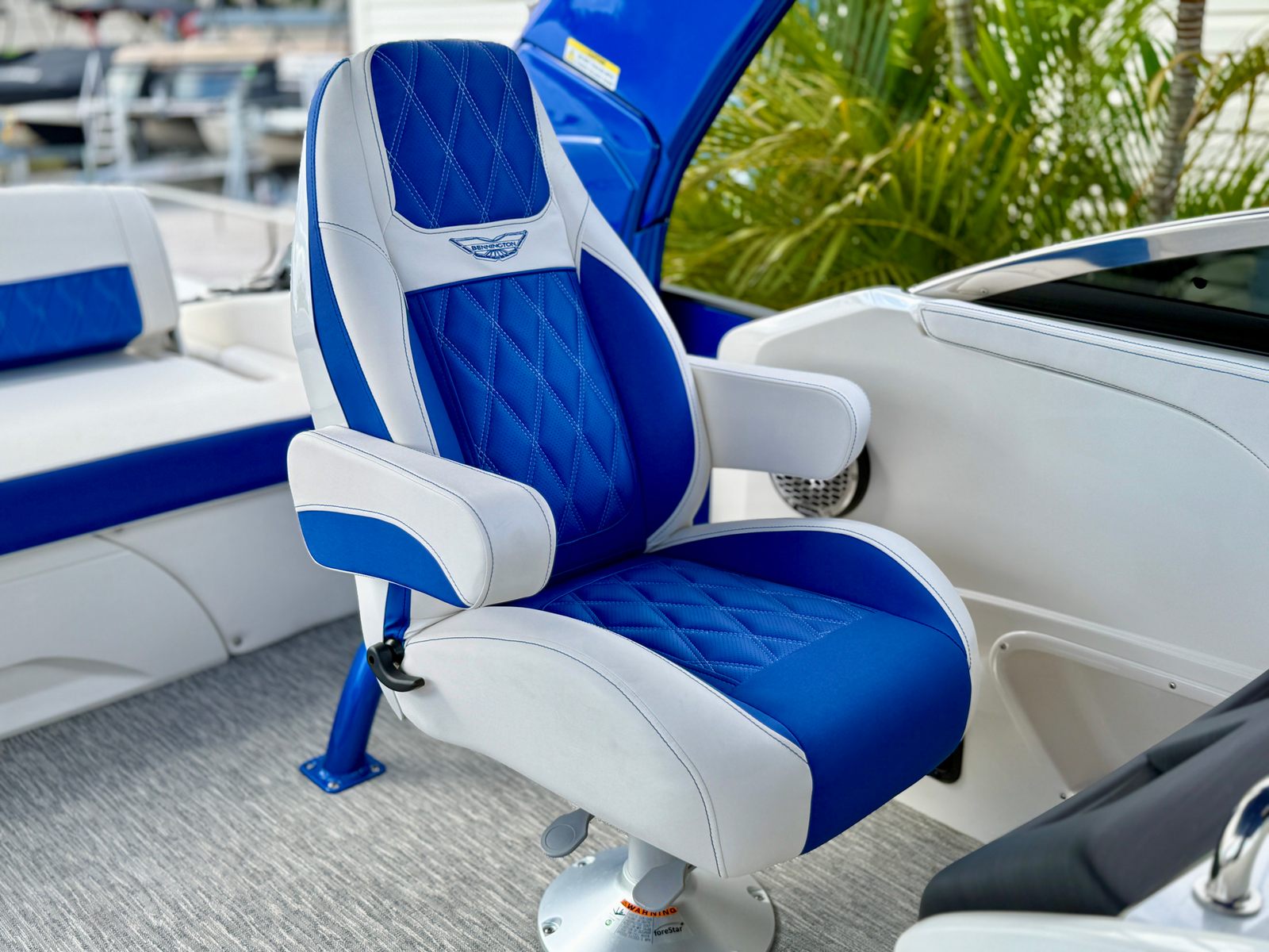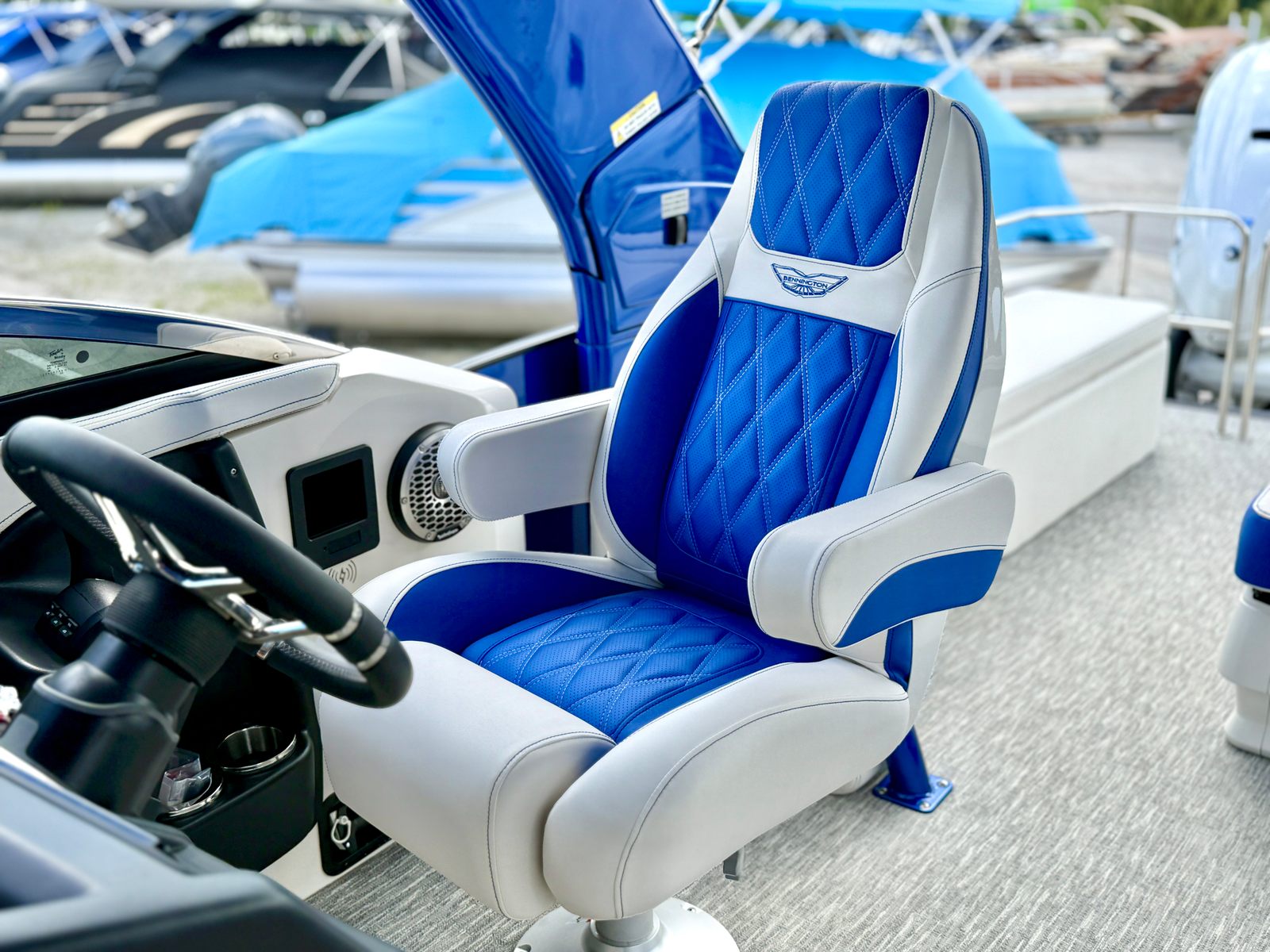 Power and precision define the performance of the Bennington 30 QXSBWAX2 ESP. Equipped with twin 450 HP Yamaha Offshore engines featuring integrated steering, this pontoon delivers a combined 900 horsepower for exhilarating acceleration and smooth handling. The Yamaha Twin Integrated Steering system ensures responsive control, making navigation effortless even in challenging conditions. Whether you are cruising across the lake or exploring new waterways, the robust engine setup provides the confidence and excitement that boating enthusiasts crave.