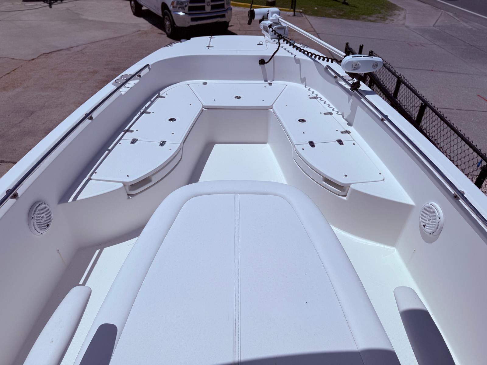 The Boston Whaler 27 Dauntless Center Console boat is packed with features designed to maximize your enjoyment and convenience on the water. Its spacious deck layout offers plenty of room for guests, gear, and activities, making it ideal for both social gatherings and serious fishing excursions. The Center Console design provides unobstructed access around the boat, allowing anglers to move freely and cast from any position. The helm is thoughtfully arranged for easy access to controls and navigation equipment, ensuring a comfortable and intuitive driving experience. With its durable construction and attention to detail, this Boston Whaler boat for sale is built to withstand the rigors of marine environments while maintaining its stylish appearance.