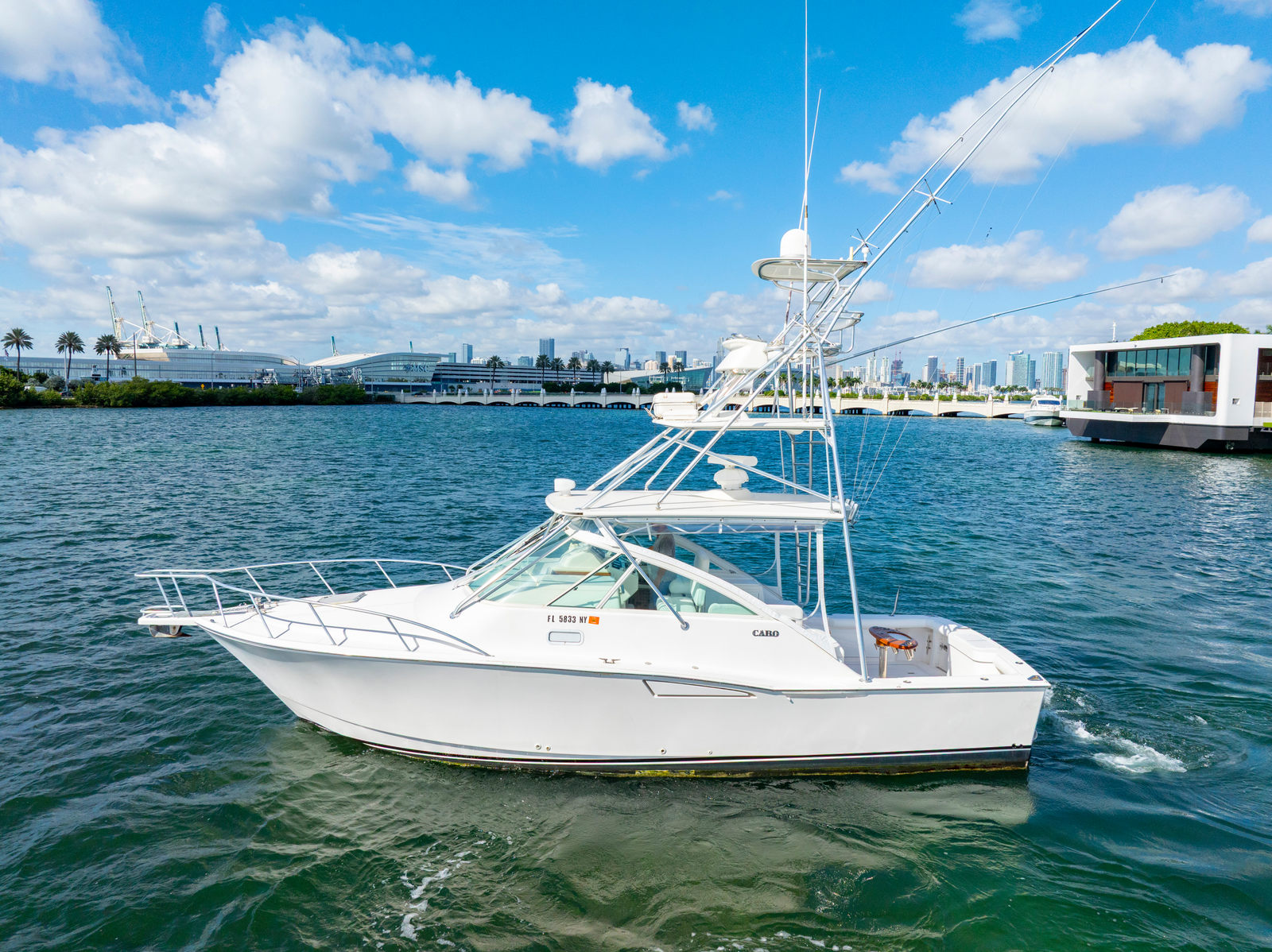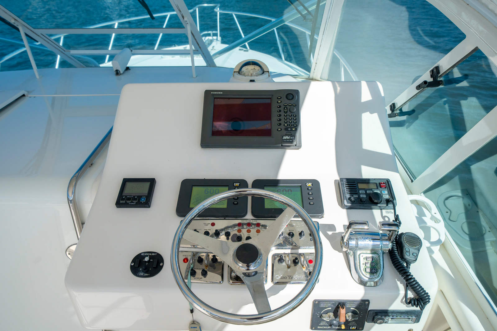 This 2004 Cabo 35 Express has the perfect combination of comfort and maximum fishability. Sleeps 4 with 1 stateroom on board. It is equipped with twin 450 HP Diesel CAT 3126B (1852 hours). Also has 7.6KW Westerbeke genset with sound shield (2560 hours). Owner sparing no expense in maintaining this loaded 35' Cabo.