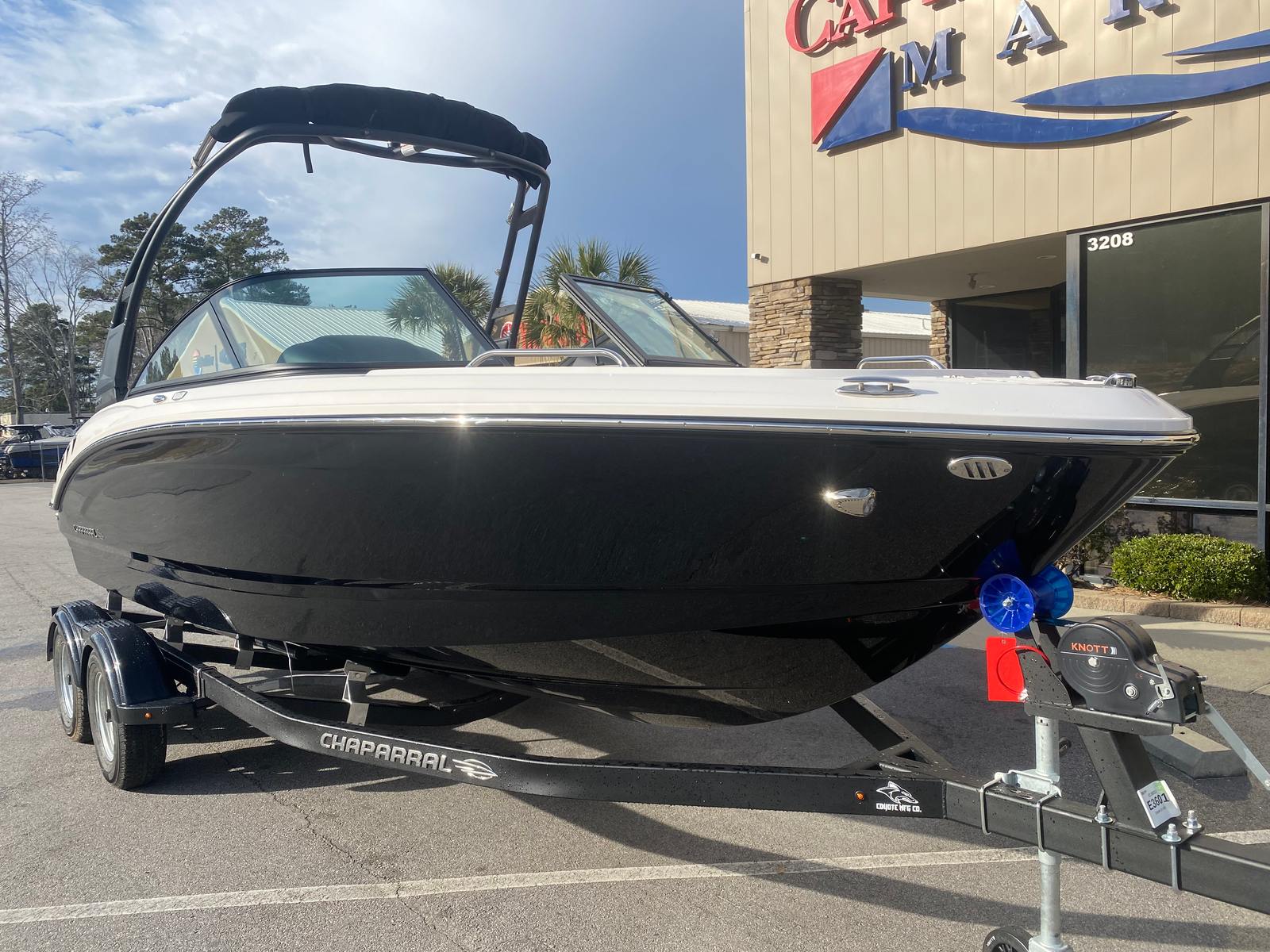 The 2026 Chaparral 21 SSI Bowrider is a brand-new vessel, meticulously crafted to deliver an unforgettable boating experience. Measuring 21 feet in length, this boat offers ample space for passengers to stretch out and enjoy the ride. Its sleek profile, highlighted by a gel-coated entire hull in striking black and a solid hull bottom color, ensures you’ll turn heads at every marina and on every lake. The Cayenne White Storm cockpit interior adds a touch of sophistication, while the black standard canvas and MTX folding arch tower provide both style and functionality. Whether you’re cruising, entertaining, or simply soaking up the sun, this Chaparral boat for sale is built to impress.