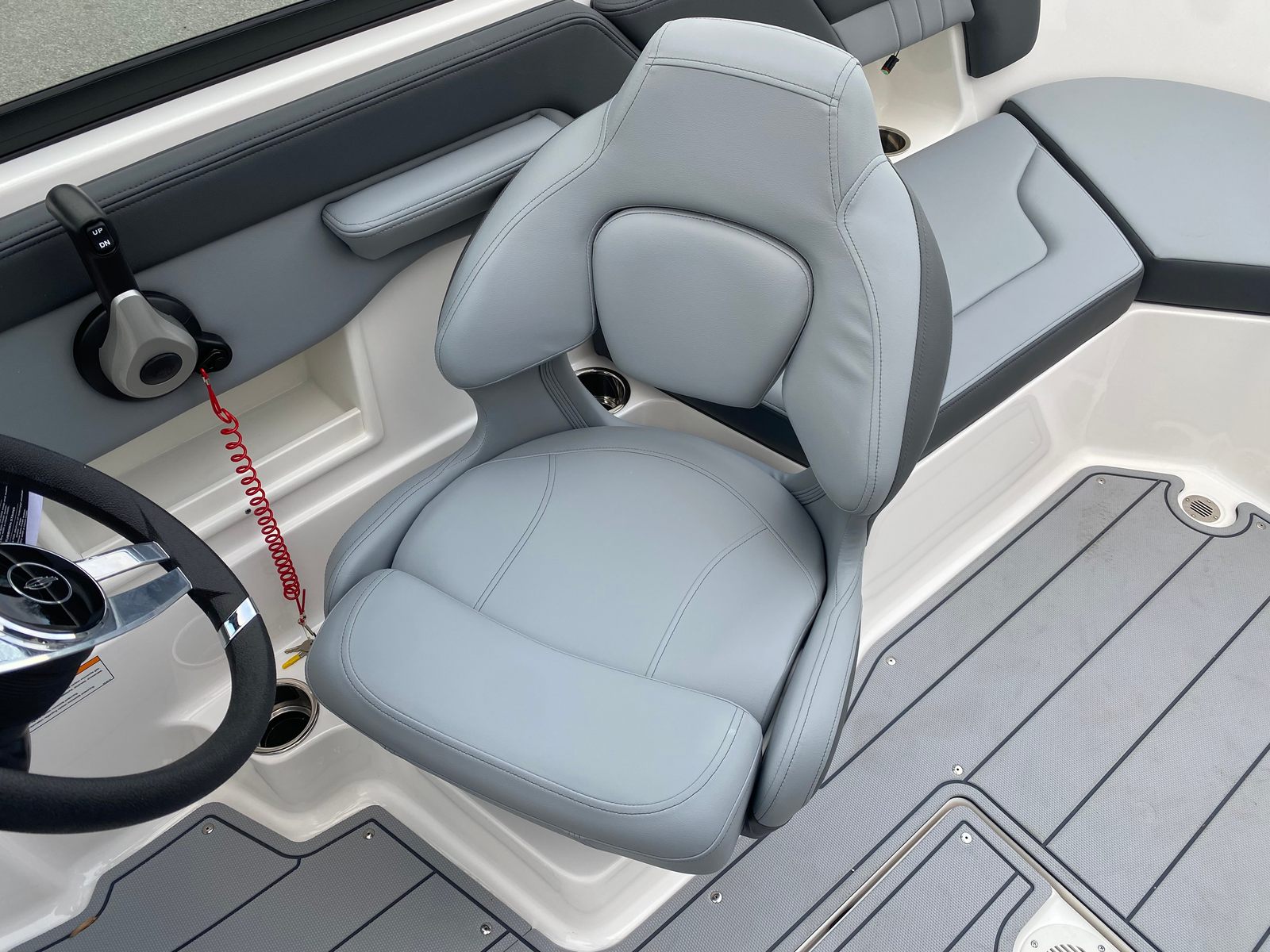 - Deluxe Package Includes Digital Depth Gauge, Bimini Top with Boot or Tower Top Canvas, Ultra Comfort Pedestal Seat with Flip Up Bolster for Helm and Passenger, Port Console Storage Door and Deluxe Badging