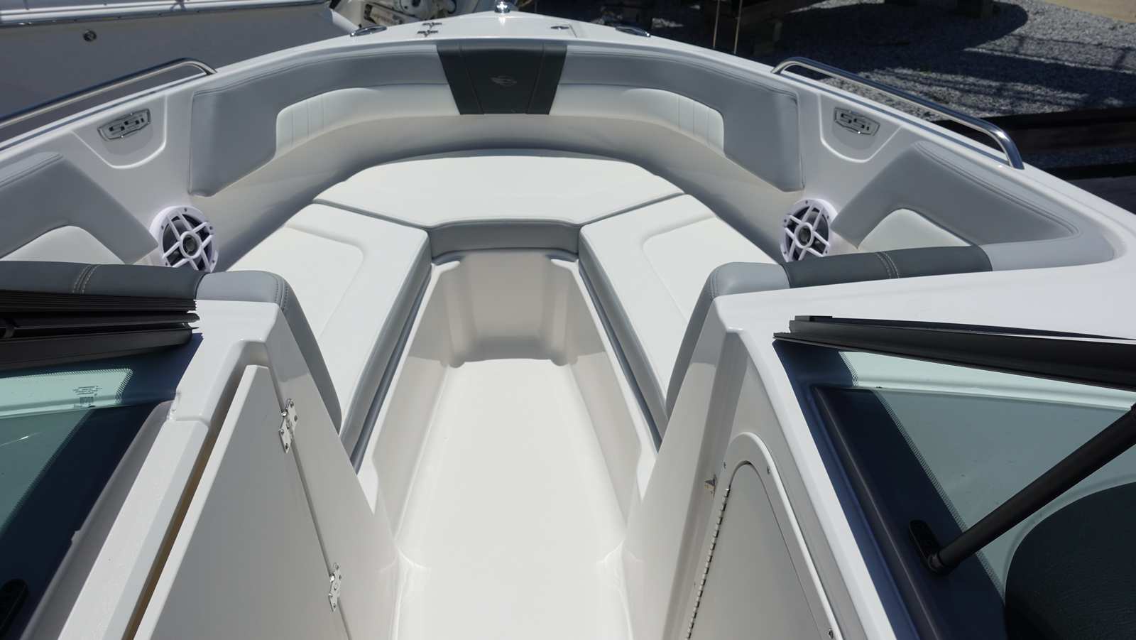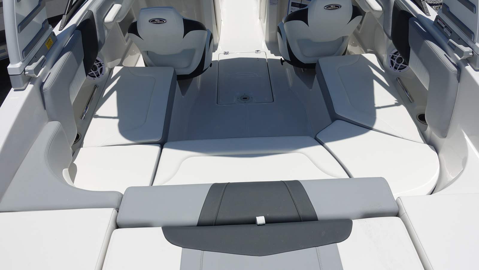 Powering this bowrider is a single, custom-painted Yamaha engine in white, boasting an impressive 250 horsepower. This setup ensures smooth acceleration, responsive handling, and reliable performance, whether you’re towing water skiers or enjoying a leisurely cruise. The engine’s advanced technology provides efficient fuel consumption, allowing you to spend more time on the water and less time refueling. With the Chaparral 23 SSI OB, you’ll experience exhilarating speed and agility, making every outing memorable. The dual battery setup with a crossover switch ensures you have the power you need for extended adventures, giving you peace of mind during long days on the water.