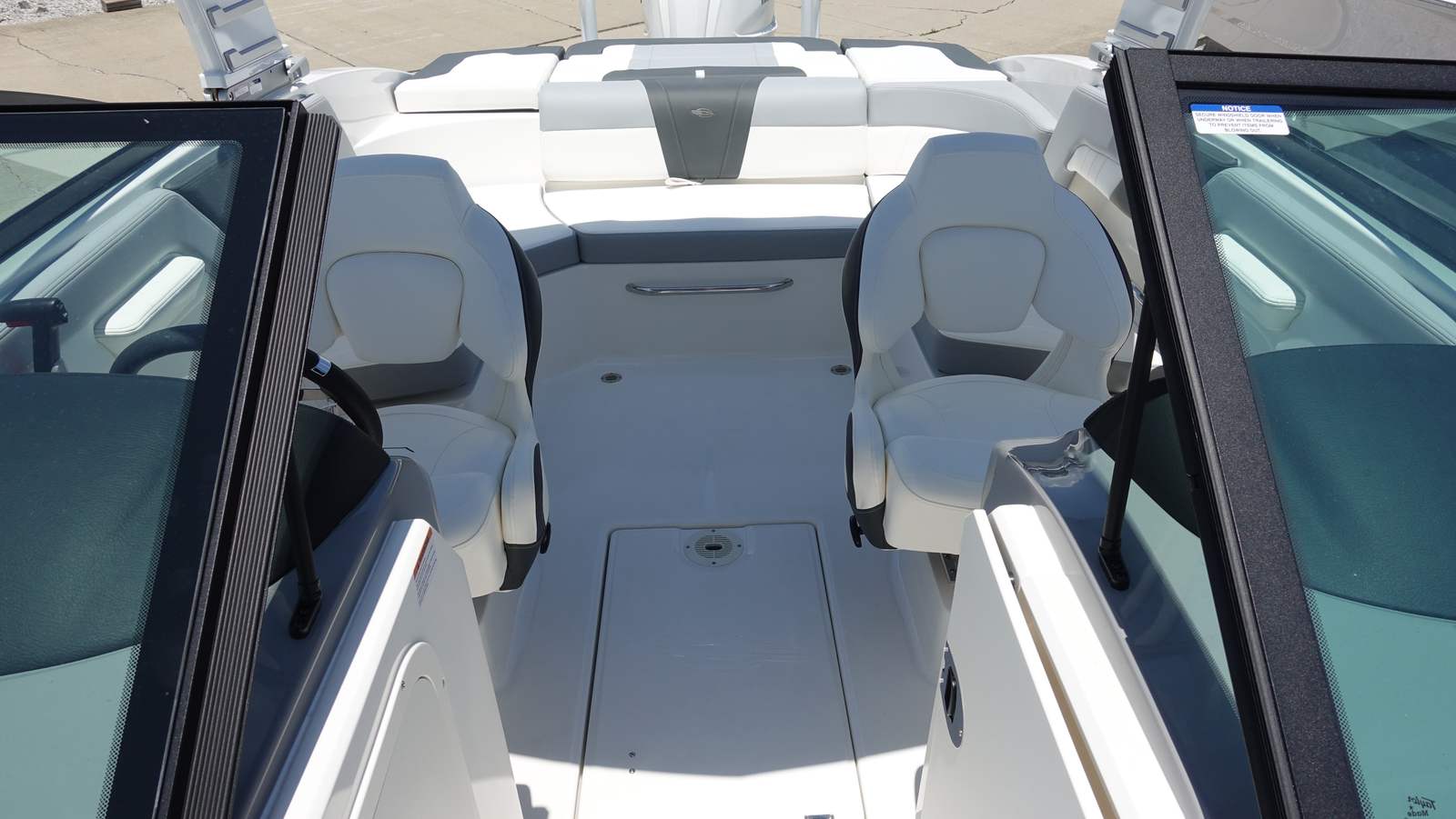 The Chaparral 23 SSI OB Bowrider is engineered for convenience and versatility. Its generous storage compartments make it easy to stow life jackets, water toys, and personal items, keeping the deck clutter-free. The aluminum tandem axle trailer with brakes and galvanized wheels simplifies launching and retrieving the boat, ensuring hassle-free transport to your favorite destinations.Docking is effortless thanks to the boat’s responsive handling and manageable size, while the dual battery setup provides reliable power for extended outings. The galvanized anchor offers secure mooring, giving you the freedom to explore new coves and beaches. Whether you’re planning a quick day trip or a weekend getaway, the Chaparral 23 SSI OB is equipped to handle all your boating needs.