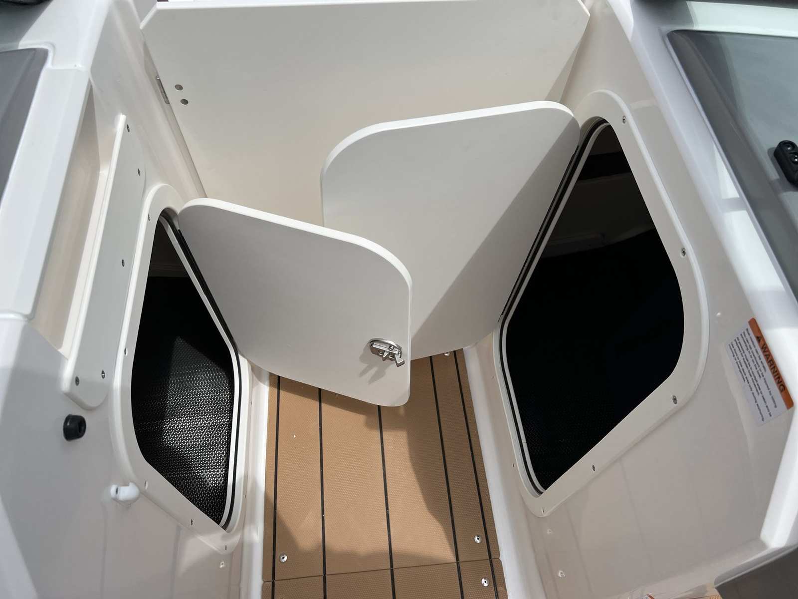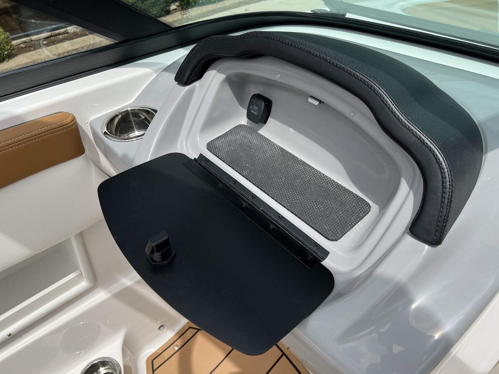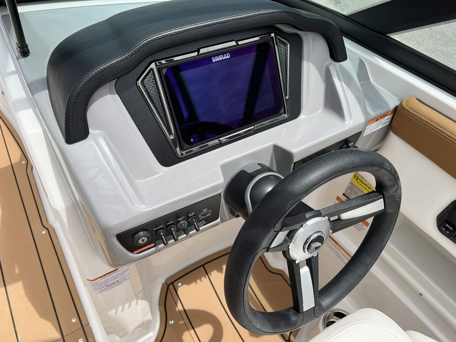 This Bowrider is packed with premium features designed to enhance your boating experience. The gel-coated hull in black not only looks stunning but also offers added durability and protection against the elements. The cockpit interior in Cayenne White Storm creates a welcoming and stylish environment, complemented by the black standard canvas and MTX folding arch tower for added shade and versatility. The mooring cover helps keep your boat protected when not in use, while the deluxe package brings a host of upgrades, including a digital depth gauge for easy navigation and safety.Enjoy the convenience of a Bimini top with boot or tower top canvas, providing shade and shelter on sunny days. The ultra comfort pedestal seat with flip-up bolster for both helm and passenger ensures maximum comfort and support, whether you’re driving or relaxing. The port console storage door and deluxe badging add practical and aesthetic touches, while the snap-in Seadek cockpit flooring in Cayenne and Seadek swim platform mat in Cayenne White offer a soft, non-slip surface that’s easy to clean and maintain.