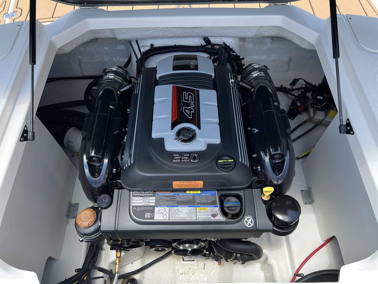Powering the Chaparral 23 SSI is a robust Mercury 4.5L MPI 1.62 Alpha engine, delivering an impressive 250 horsepower. This single-engine setup is paired with a stainless steel prop, ensuring smooth acceleration, responsive handling, and reliable power whether you’re cruising, towing water toys, or exploring new waters. The Mercury 250HP Catalyst engine is renowned for its efficiency and performance, providing the perfect balance of speed and fuel economy. With this configuration, the Chaparral 23 SSI offers exhilarating rides and effortless maneuverability, making it a standout Bowrider boat for sale for those who value both excitement and reliability.