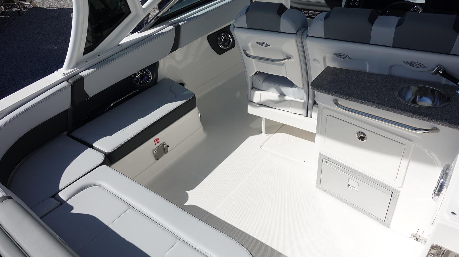 Beyond its luxurious amenities, the Chaparral 280 OSX is engineered for practical, everyday use. The twin Yamaha engines and Digital Electric Steering make docking and maneuvering a breeze, even for less experienced boaters. The inclusion of docking lights and a bow scuff plate adds peace of mind when navigating marinas or tight spaces. Fender holders keep your gear organized and easily accessible, while the air pump ensures you are always ready for water-based fun.The bow and cockpit covers help protect your boat from the elements, reducing maintenance and preserving its pristine condition. The spacious layout offers plenty of storage for gear, water toys, and personal items, making it easy to keep the deck clutter-free and ready for action. Whether you are planning a day trip or a weekend adventure, the Chaparral 280 OSX delivers the versatility and convenience you need for hassle-free boating.