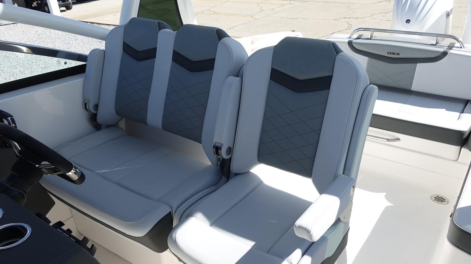 Powering the Chaparral 280 OSX are twin Yamaha F250XSB2 engines, each boasting 250 horsepower for a combined total of 500 horsepower. These white engines are equipped with Digital Electric Steering, providing smooth, responsive handling and precise control whether you are cruising, docking, or maneuvering in tight spaces. The twin-engine setup ensures robust acceleration, impressive top-end speed, and the confidence to tackle a variety of water conditions. Whether you are looking for thrilling rides or smooth, leisurely cruises, the performance capabilities of this bowrider are sure to impress.