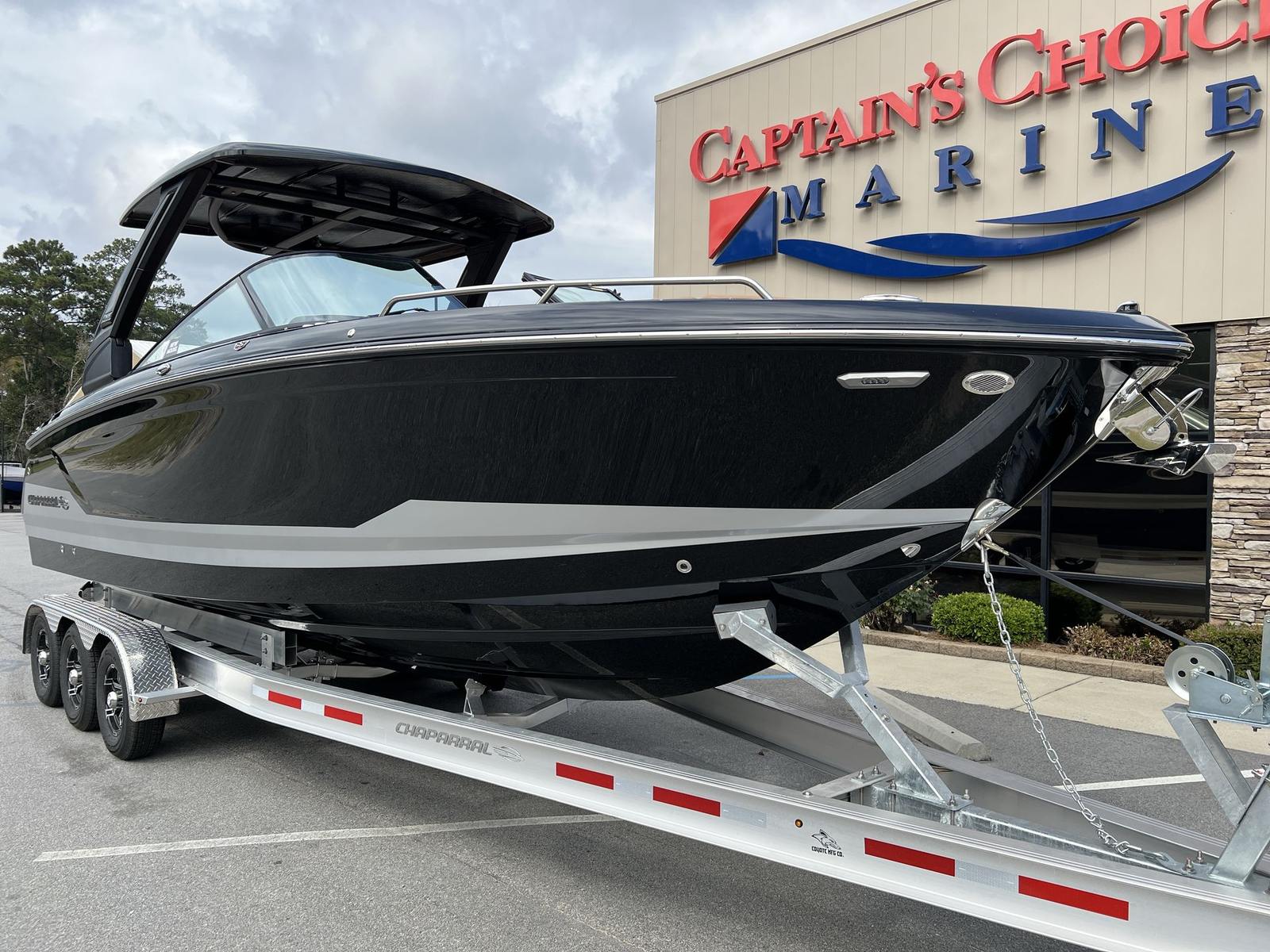 The 2026 Chaparral 30 SSX is packed with special features that elevate your boating experience. The Mercury 8.2L DTS engine provides robust performance, while the black hull side and bottom gelcoat, white deck gelcoat, and painted metallic apex hull graphic create a visually stunning exterior. The Cayenne cockpit interior offers comfort and style, making every journey a pleasure. The standard black canvas and HTX folding hardtop tower in white add versatility and protection from the elements. Enjoy added convenience with the cockpit and bow cover, keeping your boat protected when not in use. The Connectivity Package ensures you stay connected and entertained, enhancing your time on the water.