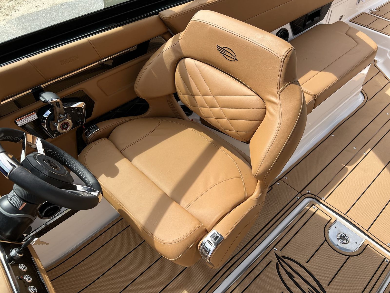 Practicality meets luxury in the Chaparral 30 SSX. The boat’s thoughtful design makes storage and organization effortless, so you can bring along all your gear for a day on the water. The HTX folding hardtop tower provides shade and protection, while the cockpit and bow cover help keep your boat clean and secure when docked. The advanced Bravo 3X drive system simplifies docking and maneuvering, making it easy to handle in marinas and tight spaces. The Connectivity Package adds a modern touch, allowing you to stay in touch with loved ones or stream your favorite music while cruising. Fuel efficiency is enhanced by the Mercury engine’s smart technology, helping you make the most of every outing.