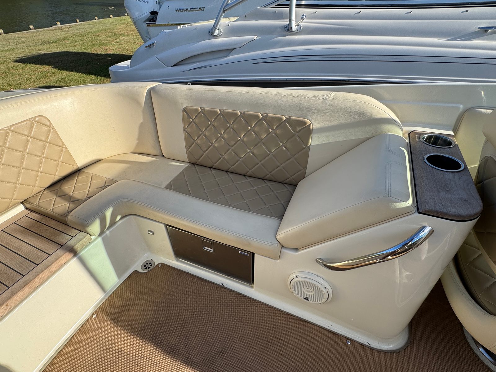 The versatility of the Chris-Craft 25 Launch makes it an excellent choice for a wide range of activities. It is perfect for family outings, offering a safe and comfortable environment for children and adults alike. The spacious bow and cockpit areas are ideal for socializing, making this bowrider a great platform for hosting friends or celebrating special occasions. For those who love water sports, the powerful engine provides plenty of thrust for tubing, wakeboarding, or skiing. The boat’s elegant design and luxurious touches also make it a standout choice for romantic sunset cruises or leisurely days exploring new waterways. Whether you are seeking adventure, relaxation, or a bit of both, the 25 Launch adapts effortlessly to your needs.