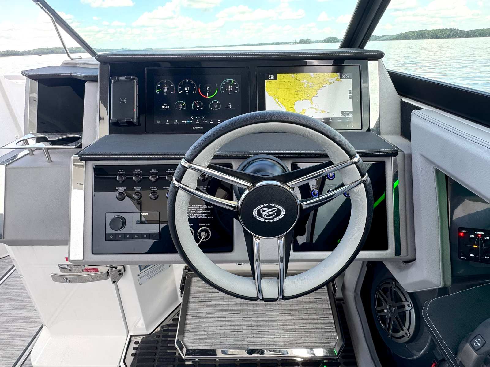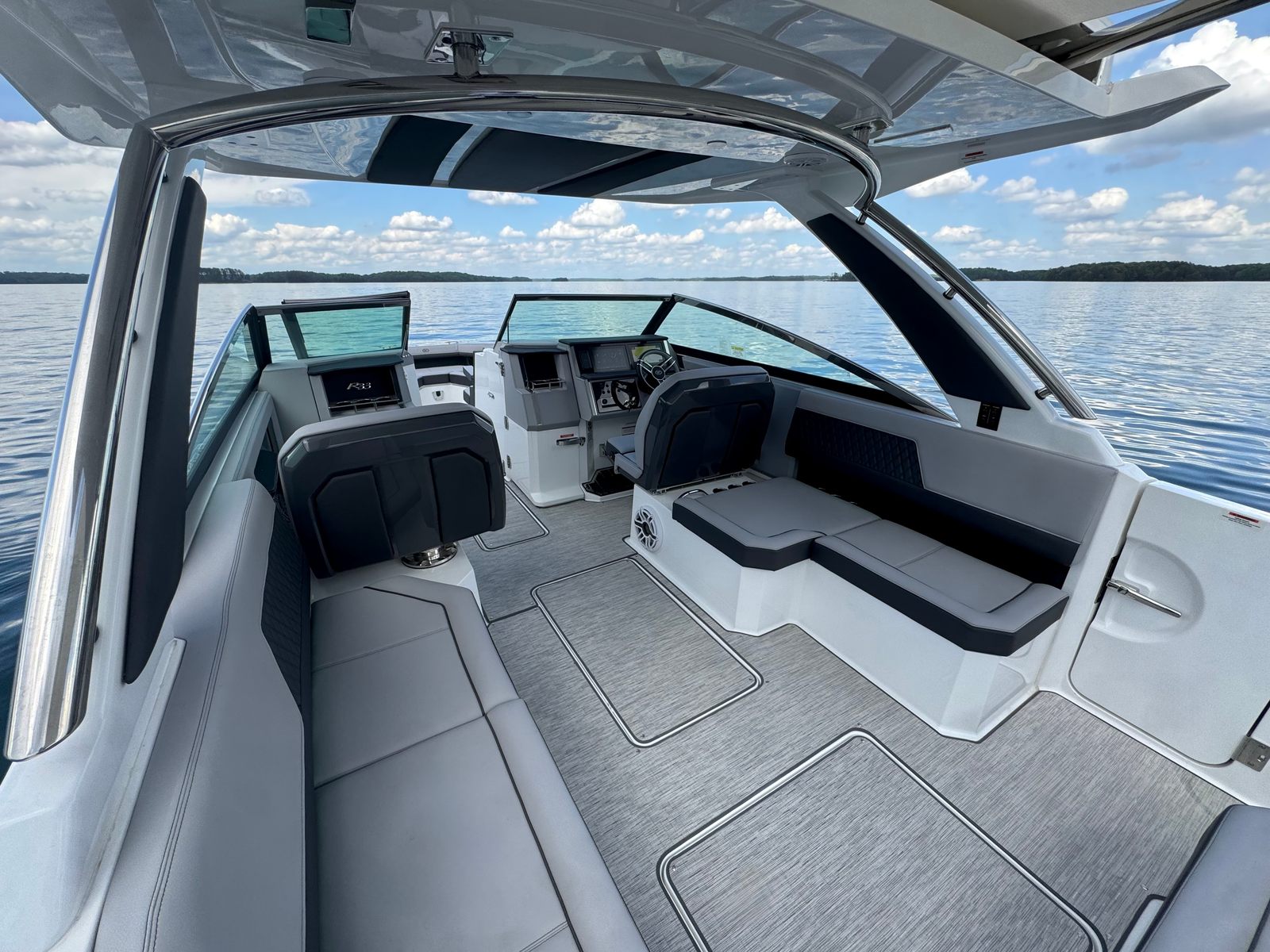 Introducing the 2025 Cobalt R33 Cruiser – the ultimate blend of luxury, performance, and innovation. With only 6 engine hours, this new cruiser is in pristine condition and ready to deliver unforgettable adventures. Its sleek Black/Gray hull, Ebony leather steering wheel, and black satin Cobalt letters with flag emblem highlight its premium craftsmanship and attention to detail.