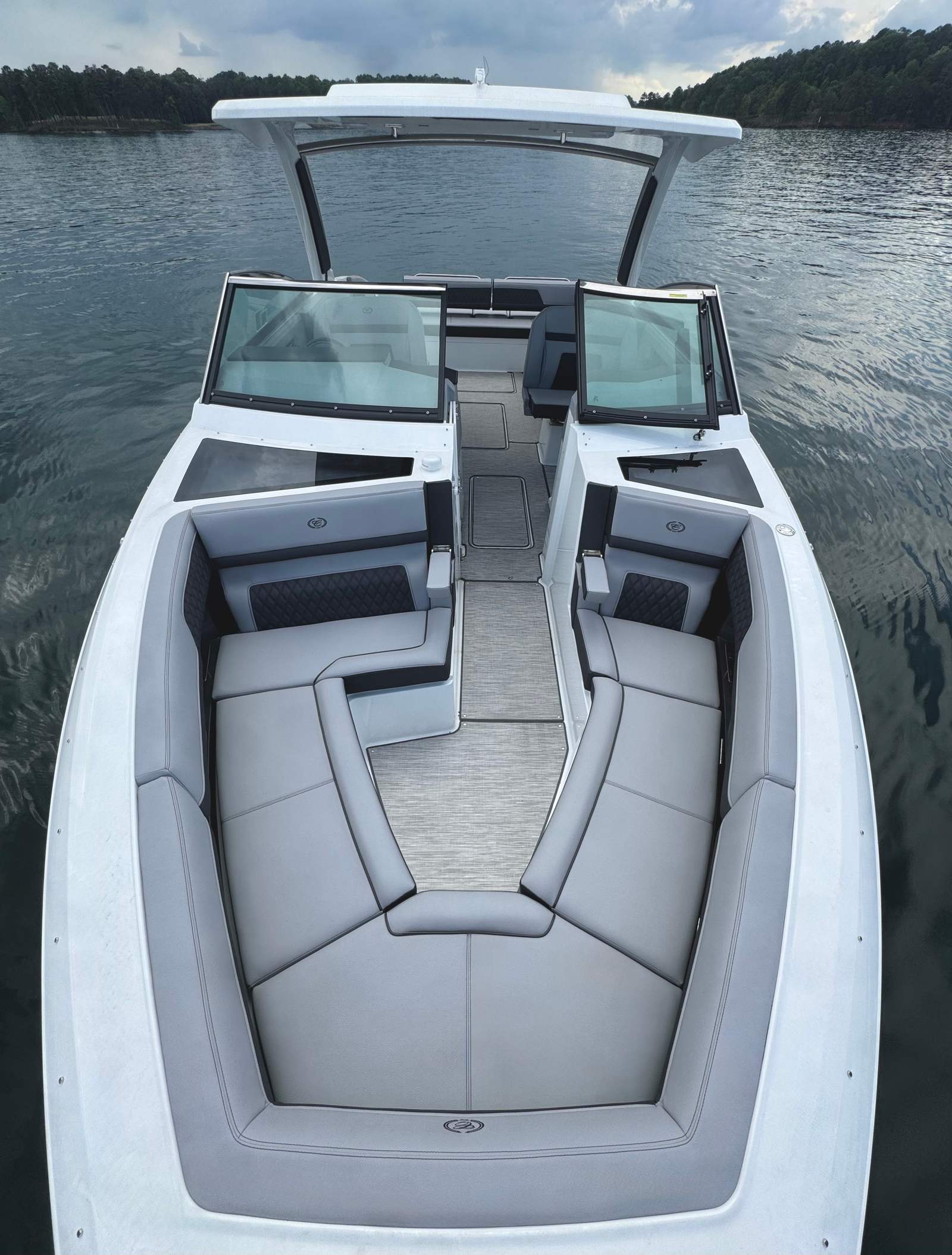 The R33 is perfect for family outings, entertaining friends, or relaxing on the water. Spacious L-lounge seating, a versatile cockpit, and swim platform ensure every day is enjoyable, while hull side Graphite Gray and hull bottom Rich Ebony give it a striking, stylish look.