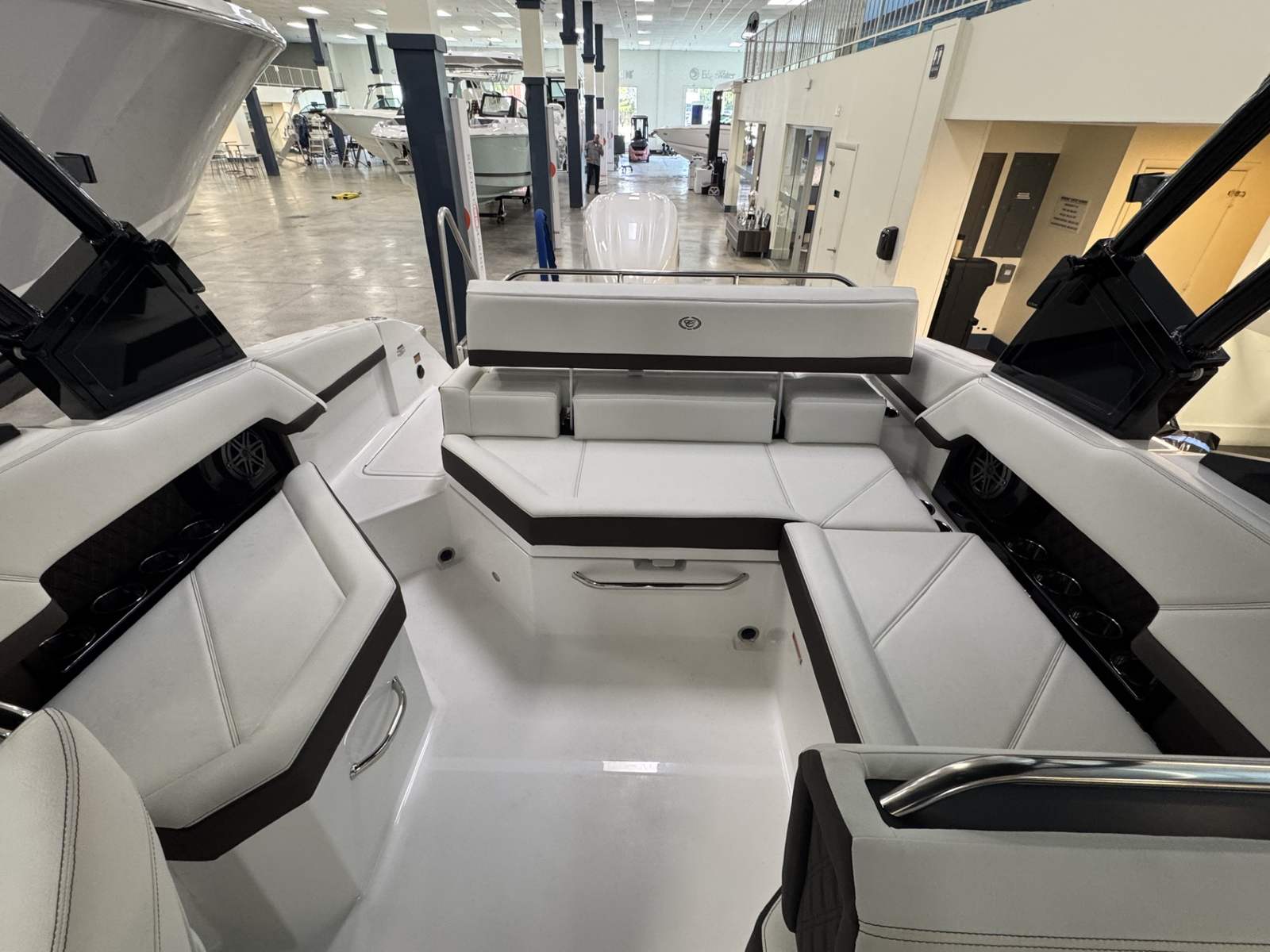 The Cobalt R4 OB is packed with special features that elevate your boating experience. The Accent Stripe in Rich Ebony adds a touch of sophistication to the exterior, while the Aft Facing Rumble Seat & Ski Tow Pylon create the perfect setup for watersports enthusiasts and sunseekers alike. The Arch, E2, Black (Folding) with Bimini - Ebony provides shade and style, allowing you to enjoy the outdoors in comfort. A Battery Maintainer/Charger ensures your boat is always ready to go, while the Bow Tonneau Cover - Ebony and Cockpit Tonneau Cover - Ebony protect your investment from the elements.Distinctive Cobalt Letters in Black Satin showcase the brand’s legacy, and Docking Lights - Stainless Steel make evening arrivals a breeze. Fender Clips with Line offer convenience when securing your boat, and the Glass Cockpit with Dual Garmin 8610 delivers cutting-edge navigation and control. Every detail is thoughtfully designed to enhance your time on the water, making the R4 OB a standout choice among Bowrider boats for sale.