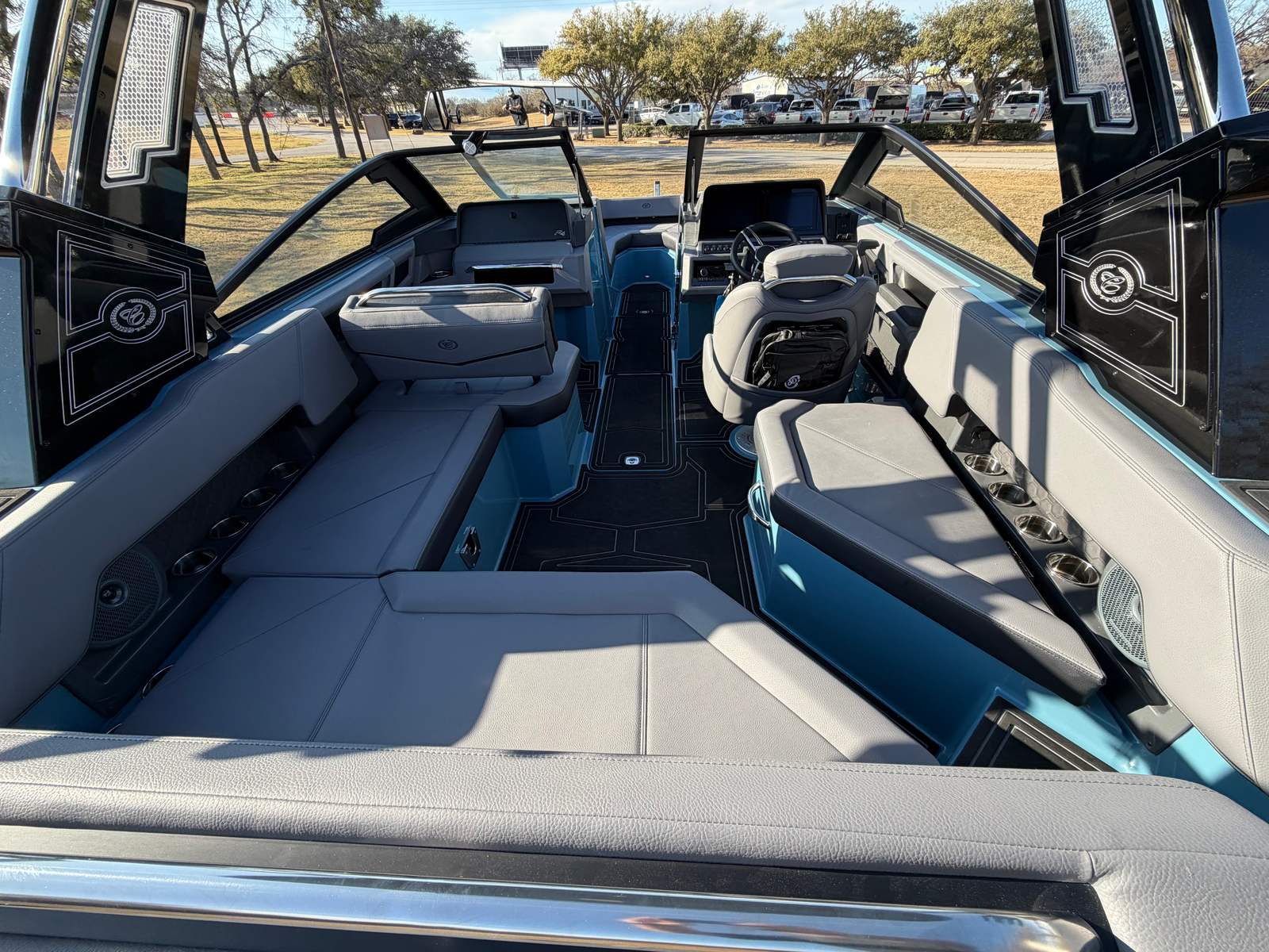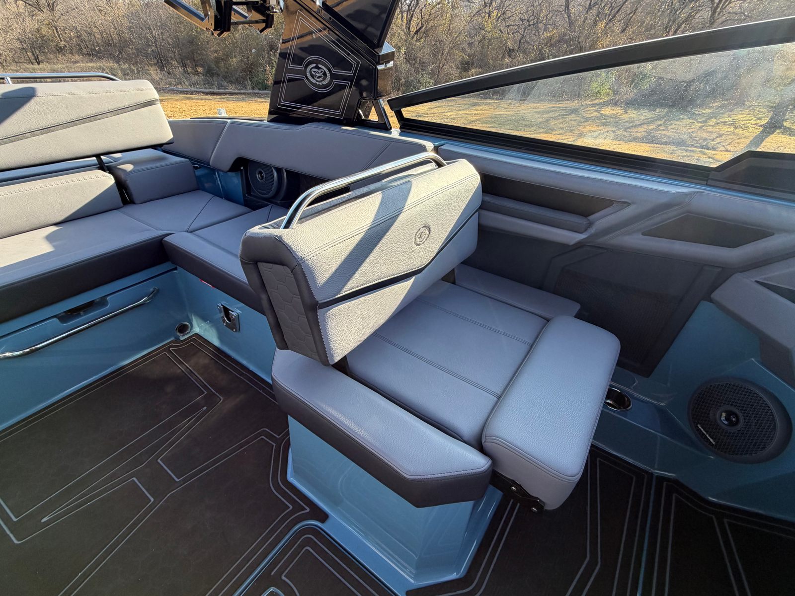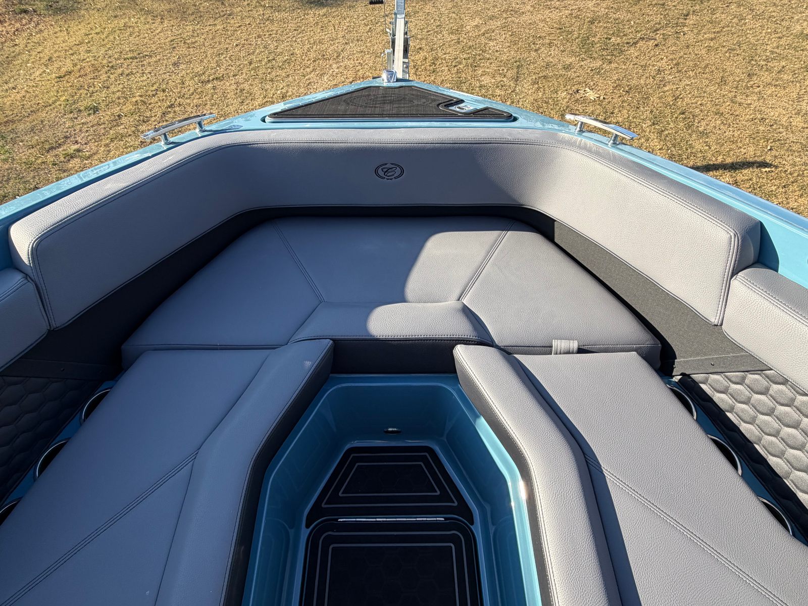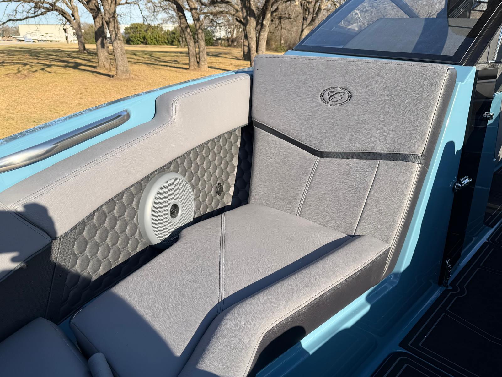 The Cobalt R4 Surf is packed with innovative features and thoughtful design elements that set it apart from other bowrider boats for sale. Its spacious 24.25-foot layout offers ample room for passengers to relax, socialize, and soak up the sun. The ergonomically designed seating ensures comfort during long days on the water, while the open bow configuration provides unobstructed views and easy access to the water.The R4 Surf’s surf-specific hull design is engineered for optimal wave creation, making it a top choice for water sports enthusiasts. The intuitive controls and advanced surf system allow you to customize the wake to suit your preferences, whether you’re a seasoned surfer or introducing friends and family to the sport. Every detail, from the premium upholstery to the sleek, modern lines, reflects Cobalt’s commitment to quality and luxury.