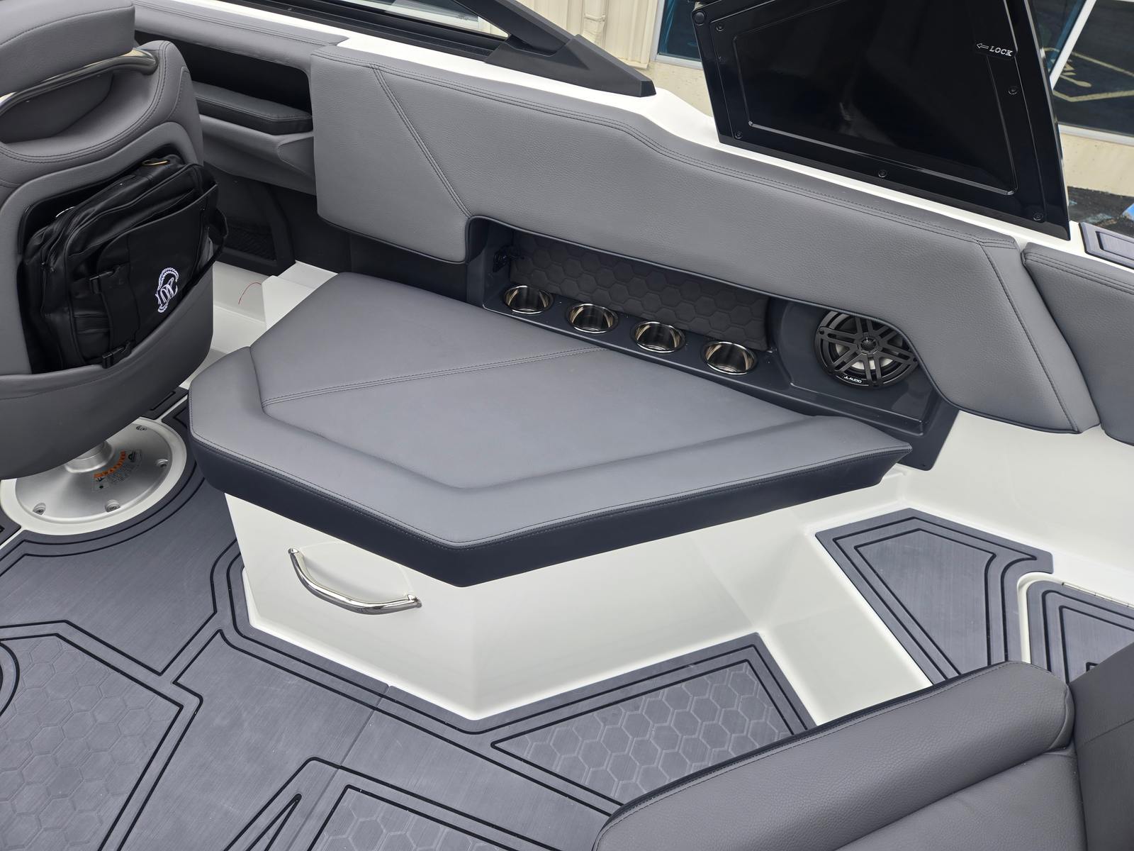 Beyond its impressive style and performance, the Cobalt R4 Surf is engineered for convenience and ease of ownership. The boat’s manageable 24.25-foot length makes it easy to dock, trailer, and store, while the efficient Volvo V8 engine helps optimize fuel consumption for longer days on the water. The Battery Maintainer/Charger is a valuable addition, ensuring your boat remains powered up and ready to go whenever adventure calls.The extended swim platform not only enhances the boat’s recreational capabilities but also provides a safe and accessible area for boarding and disembarking. The Aft Facing Rumble Seat offers a versatile seating option, perfect for watching water sports or simply soaking up the sun. Every detail of the R4 Surf is designed to make your boating experience as enjoyable and hassle-free as possible.