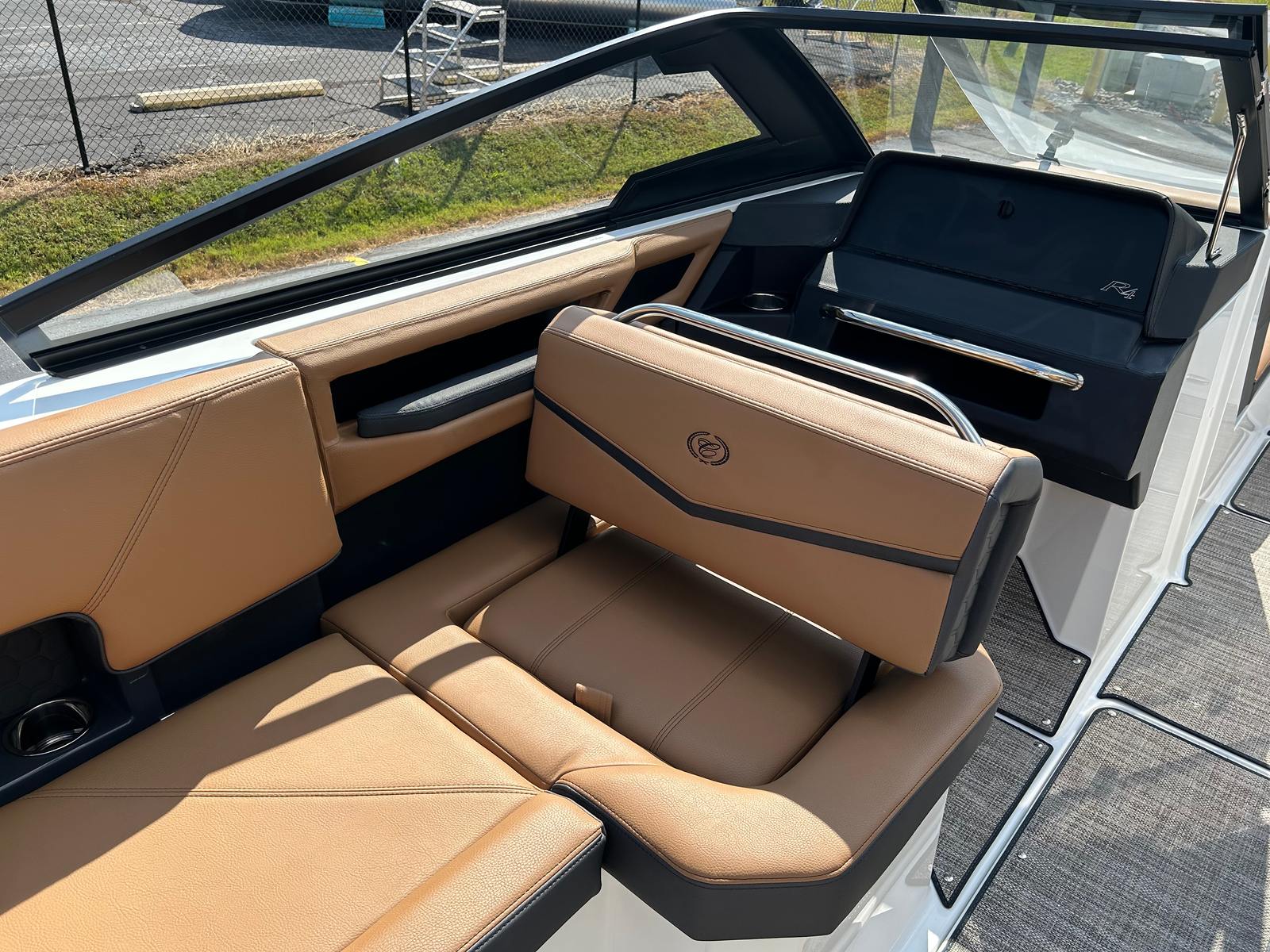 The Cobalt R4 Surf is designed with practicality in mind, making ownership effortless and enjoyable. Its manageable length of 24.25 feet allows for easy storage and docking, whether you’re at the marina or your private dock. The forward-drive propulsion system enhances maneuverability, simplifying the process of docking and navigating crowded waterways. The battery maintainer/charger ensures your boat is always ready to go, reducing downtime and maintenance hassles.Fender clips with lines provide added protection when docking, while the stainless steel docking lights improve visibility during low-light conditions. The dual glass cockpit displays offer intuitive navigation and system monitoring, making it easy to plan your route and keep track of essential information. The combination of style, comfort, and functionality makes the R4 Surf a practical choice for boaters who value convenience and reliability.