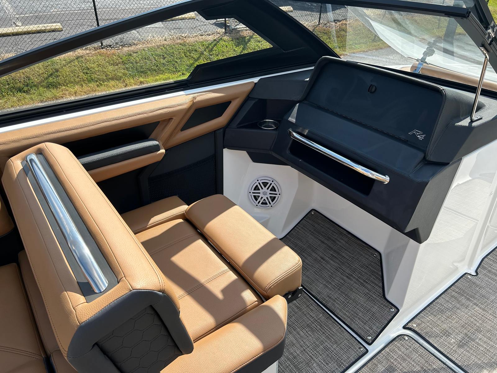 The Cobalt R4 Surf is packed with premium features designed to elevate your boating experience. The aft-facing rumble seat offers a comfortable spot to relax and enjoy the view, while the battery maintainer/charger (110V) keeps your boat powered and ready for action. The interior showcases a luxurious combination of caramel, carbon, and ebony, complemented by striking Cobalt letters in white satin for a touch of elegance.Stainless steel docking lights illuminate your way during evening outings, and four fender clips with lines provide added convenience and protection when docking. The floor covering in sea grass and raw umber not only enhances the boat’s aesthetic appeal but also offers durability and comfort underfoot. The glass cockpit features dual Volvo 8610 displays, providing advanced navigation and control at your fingertips. The navy hull bottom adds a bold and stylish finishing touch, ensuring your boat stands out wherever you go.