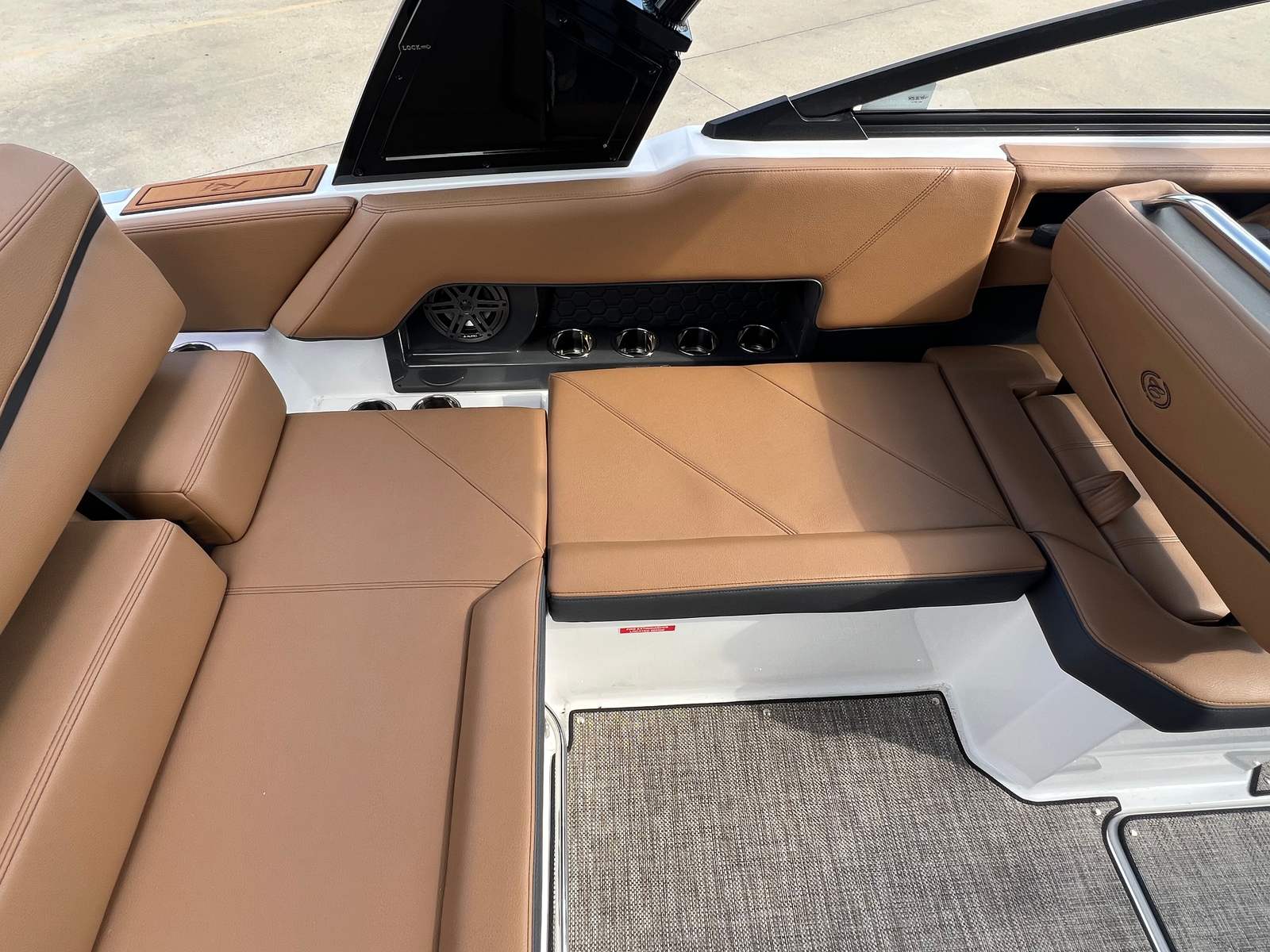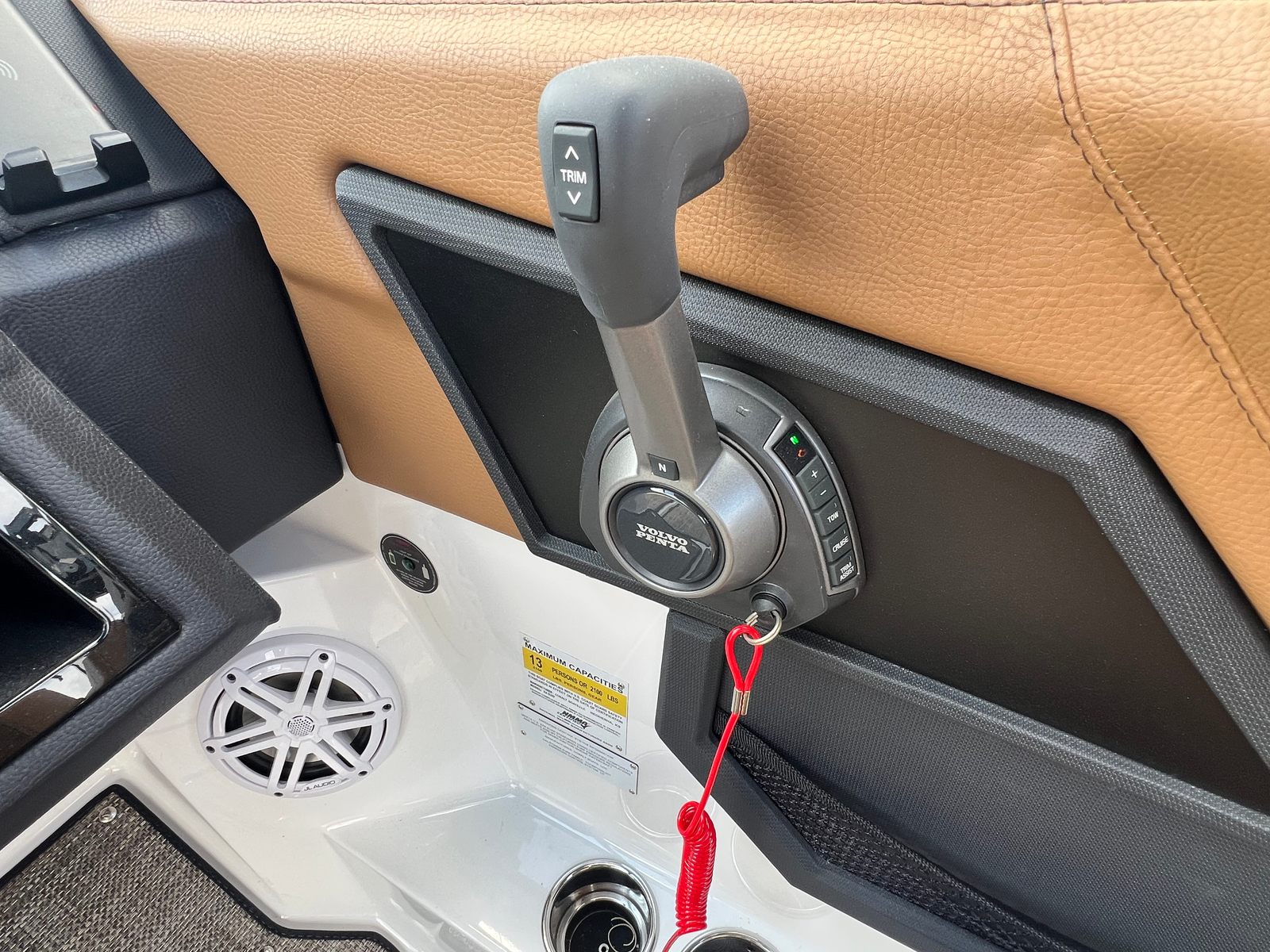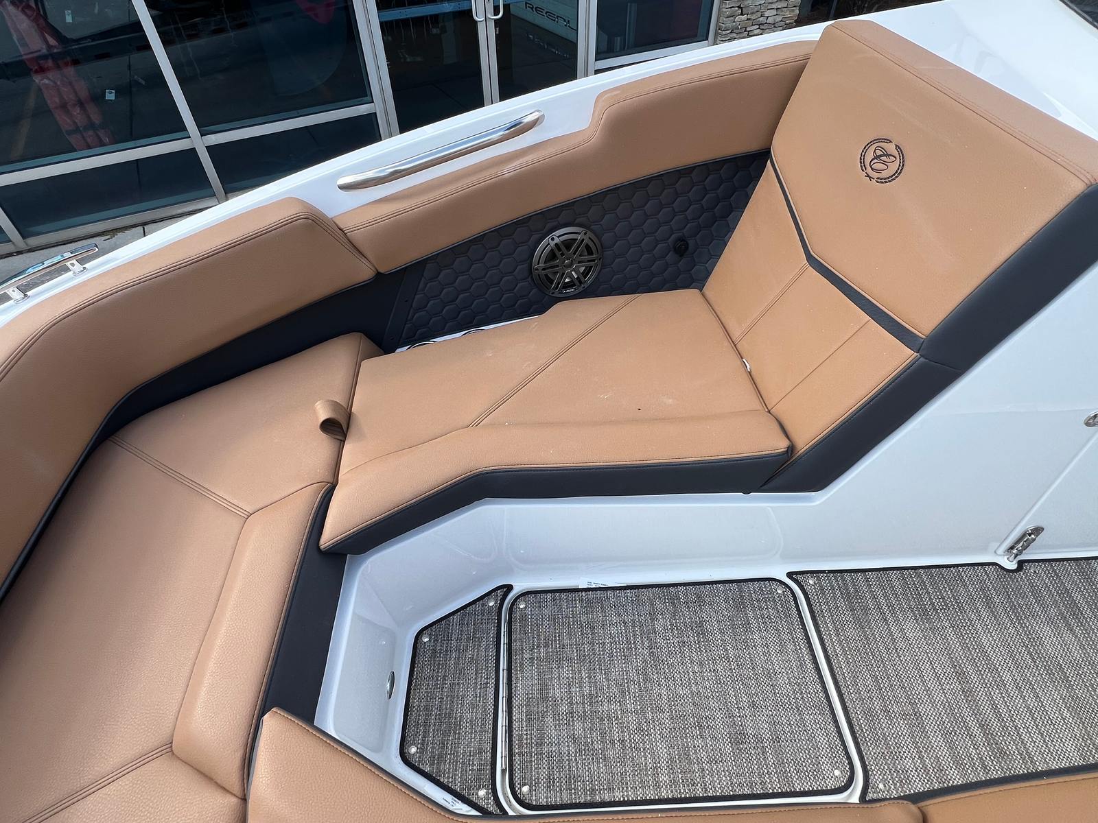 The Cobalt R4 Surf is as practical as it is luxurious. Its efficient engine and streamlined hull design make it easy to maneuver and dock, even in crowded marinas. The included fender clips and docking lights add an extra layer of convenience and safety, ensuring stress-free arrivals and departures. The battery maintainer/charger keeps your boat powered and ready, reducing downtime and maintenance hassles.Storage is ample, allowing you to bring along all the essentials for a day of fun—whether that means water sports gear, picnic supplies, or extra towels for swimming. The durable seagrass flooring stands up to wet feet and active use, while the spacious layout provides plenty of room for everyone to spread out and enjoy the ride. Fuel efficiency is a hallmark of the Volvo V8 350CE DP engine, so you can spend more time on the water and less time at the pump.