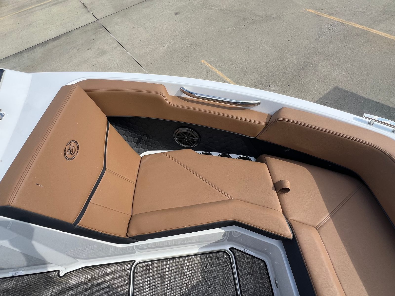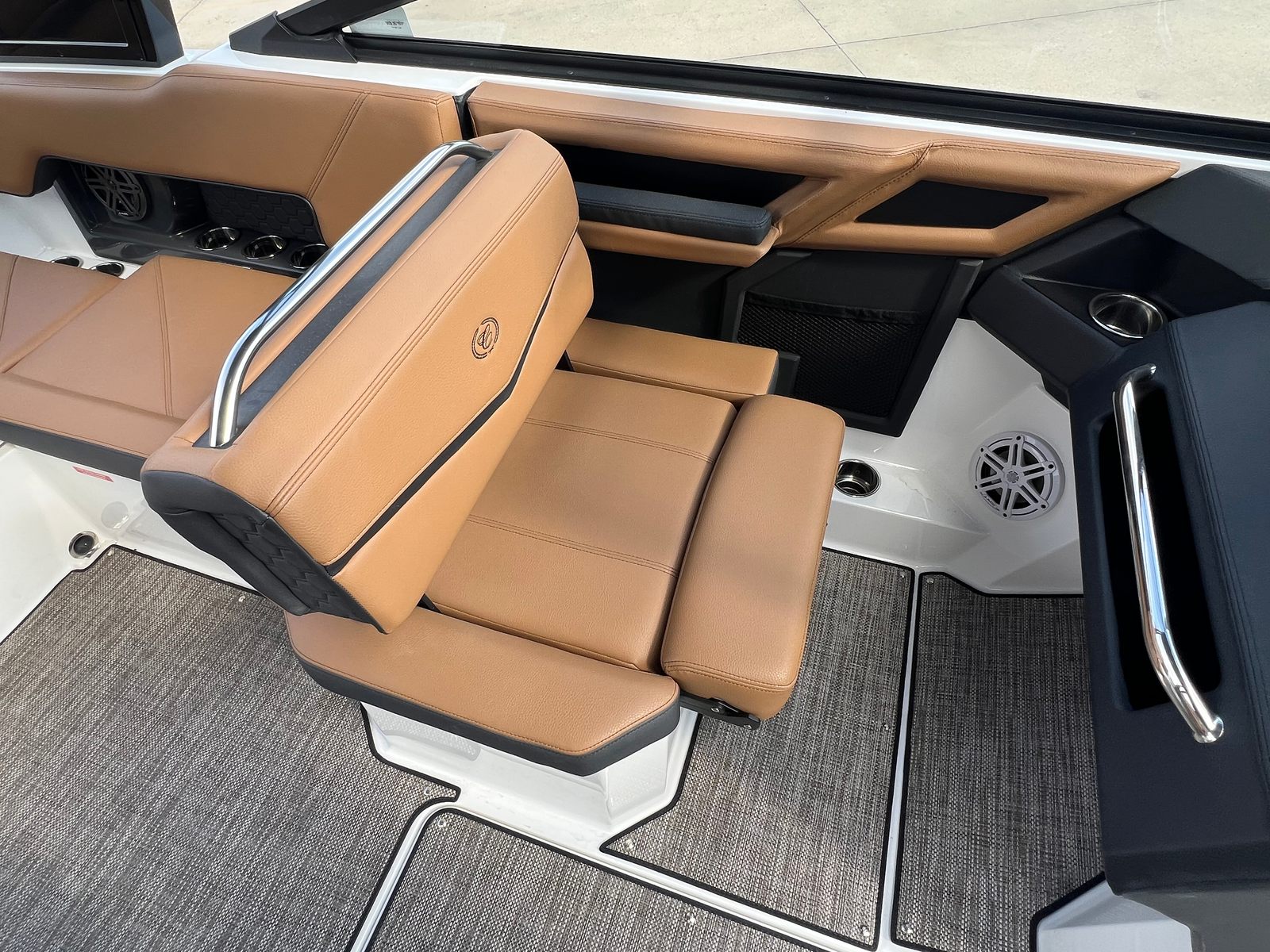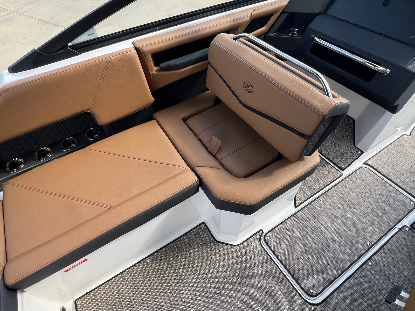 The Cobalt R4 Surf is as practical as it is luxurious. Its efficient engine and streamlined hull design make it easy to maneuver and dock, even in crowded marinas. The included fender clips and docking lights add an extra layer of convenience and safety, ensuring stress-free arrivals and departures. The battery maintainer/charger keeps your boat powered and ready, reducing downtime and maintenance hassles.Storage is ample, allowing you to bring along all the essentials for a day of fun—whether that means water sports gear, picnic supplies, or extra towels for swimming. The durable seagrass flooring stands up to wet feet and active use, while the spacious layout provides plenty of room for everyone to spread out and enjoy the ride. Fuel efficiency is a hallmark of the Volvo V8 350CE DP engine, so you can spend more time on the water and less time at the pump.