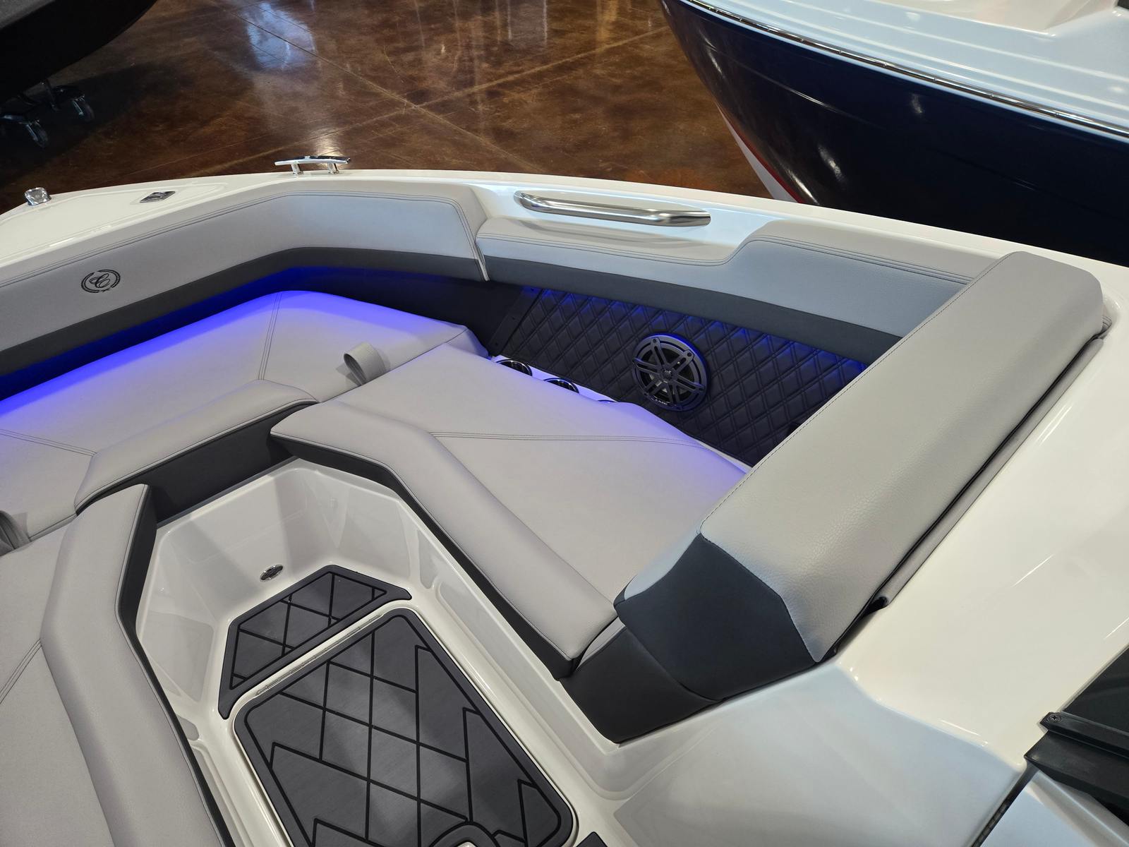 Owning the Cobalt R4 Bowrider means embracing a lifestyle of fun, relaxation, and adventure. The spacious layout is perfect for socializing, with plenty of room for guests to lounge, sunbathe, or enjoy refreshments. The premium materials and finishes throughout the boat create an inviting environment, while the ergonomic design ensures comfort for everyone on board.The LED accent lighting transforms evening outings into memorable experiences, setting the mood for celebrations or quiet moments under the stars. The advanced navigation system and glass cockpit make piloting the boat intuitive and enjoyable, so you can focus on making memories with family and friends.