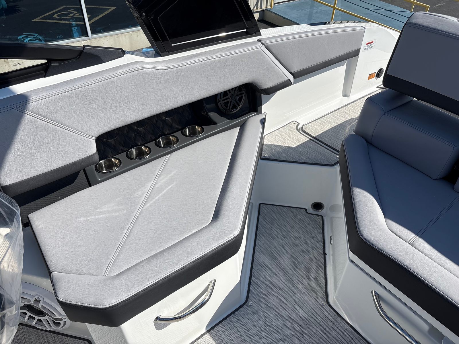 The Cobalt R4 is loaded with features that enhance both its functionality and its appeal. The Aft Facing Rumble Seat offers a unique and comfortable spot to relax and take in the scenery, while the Arch E2 Black Folding with Bimini in Ebony provides shade and style, making it easy to enjoy sunny days without worry. The boat’s Battery Maintainer/Charger ensures your power systems are always ready for action, while the Cobalt Letters in Black Satin add a touch of sophistication to the boat’s branding. Stainless Steel Docking Lights not only enhance the R4’s appearance but also provide practical illumination for evening arrivals and departures. Every detail, from the color accents to the premium materials, reflects Cobalt’s dedication to quality and innovation.