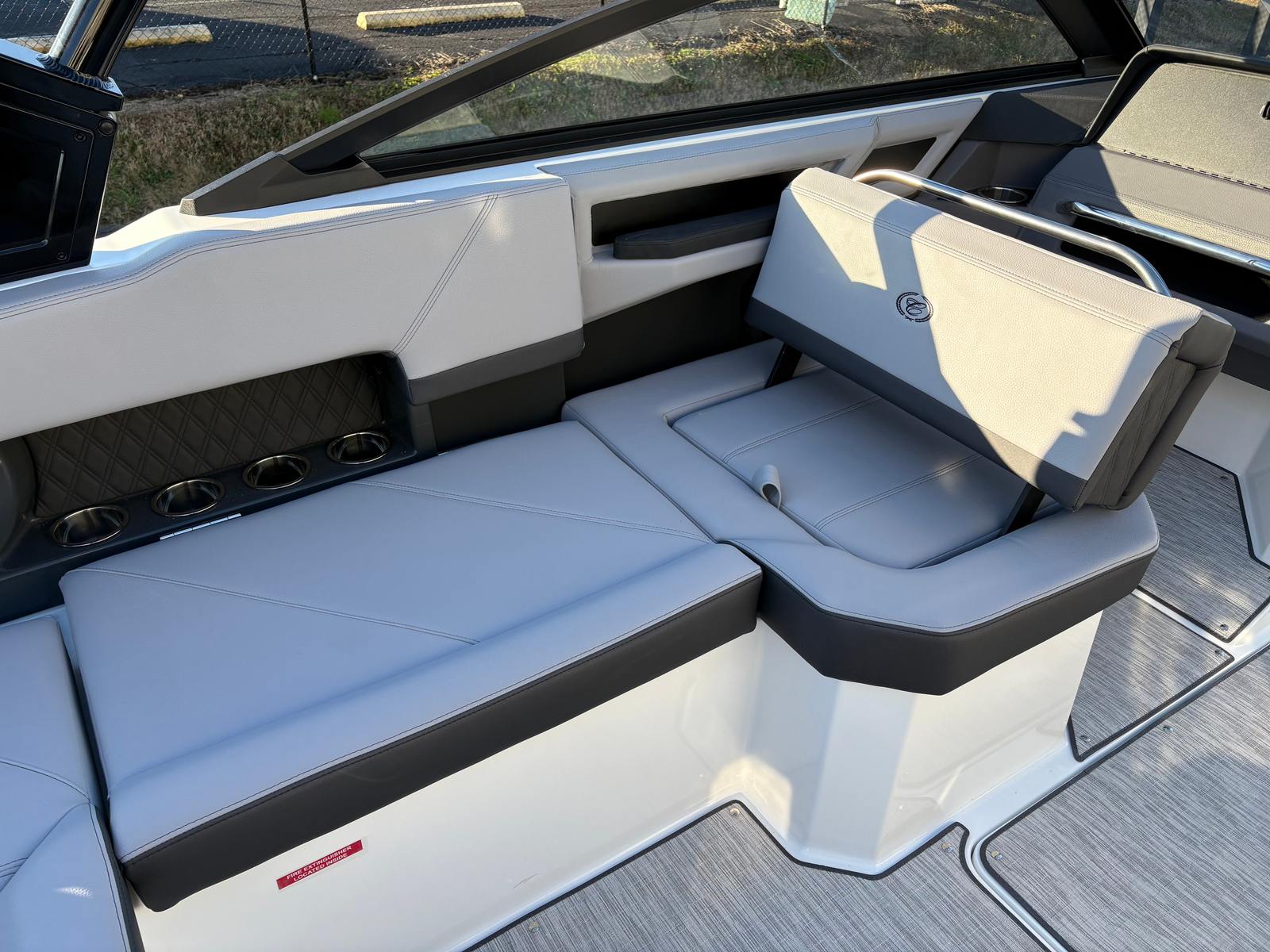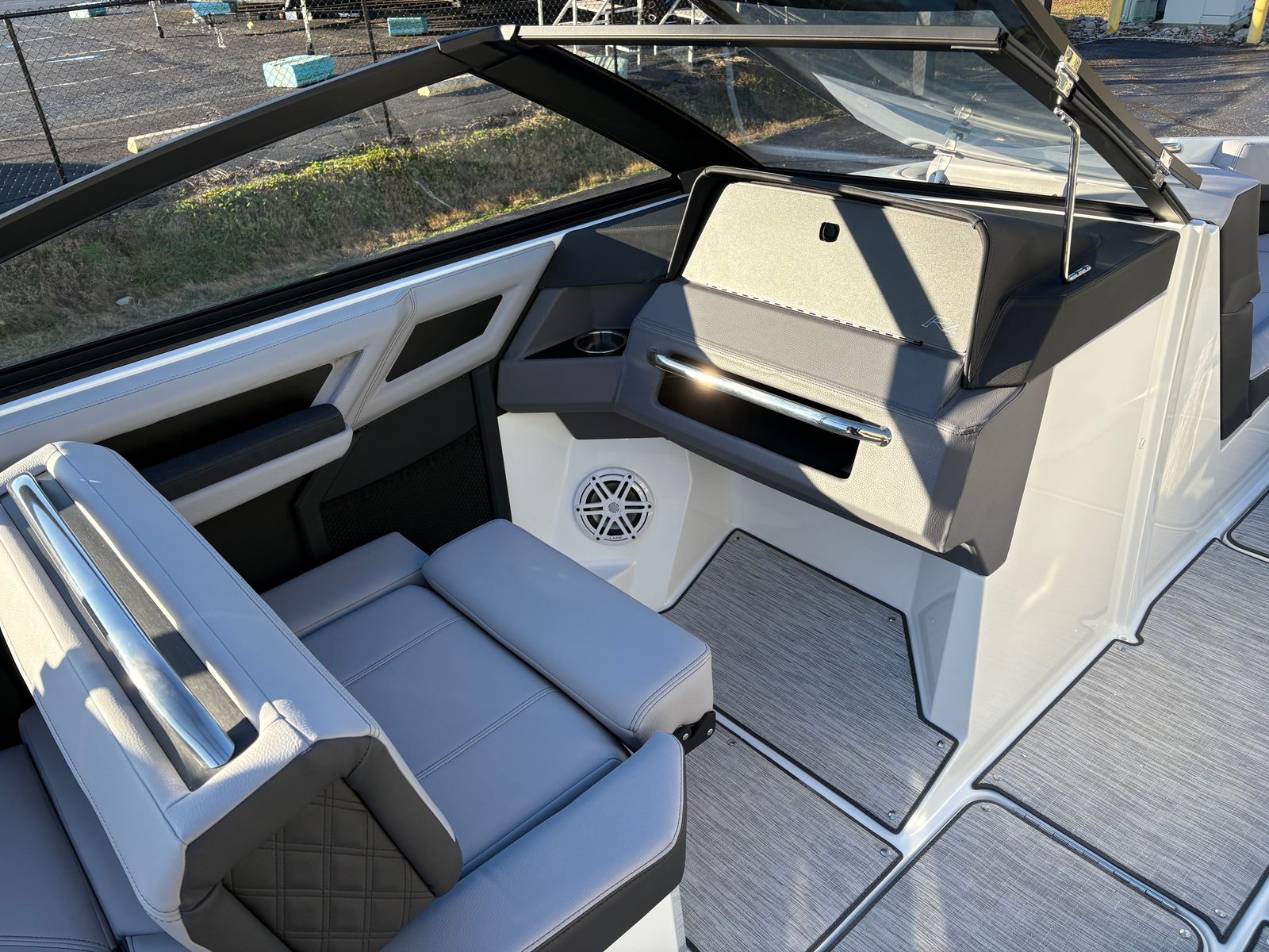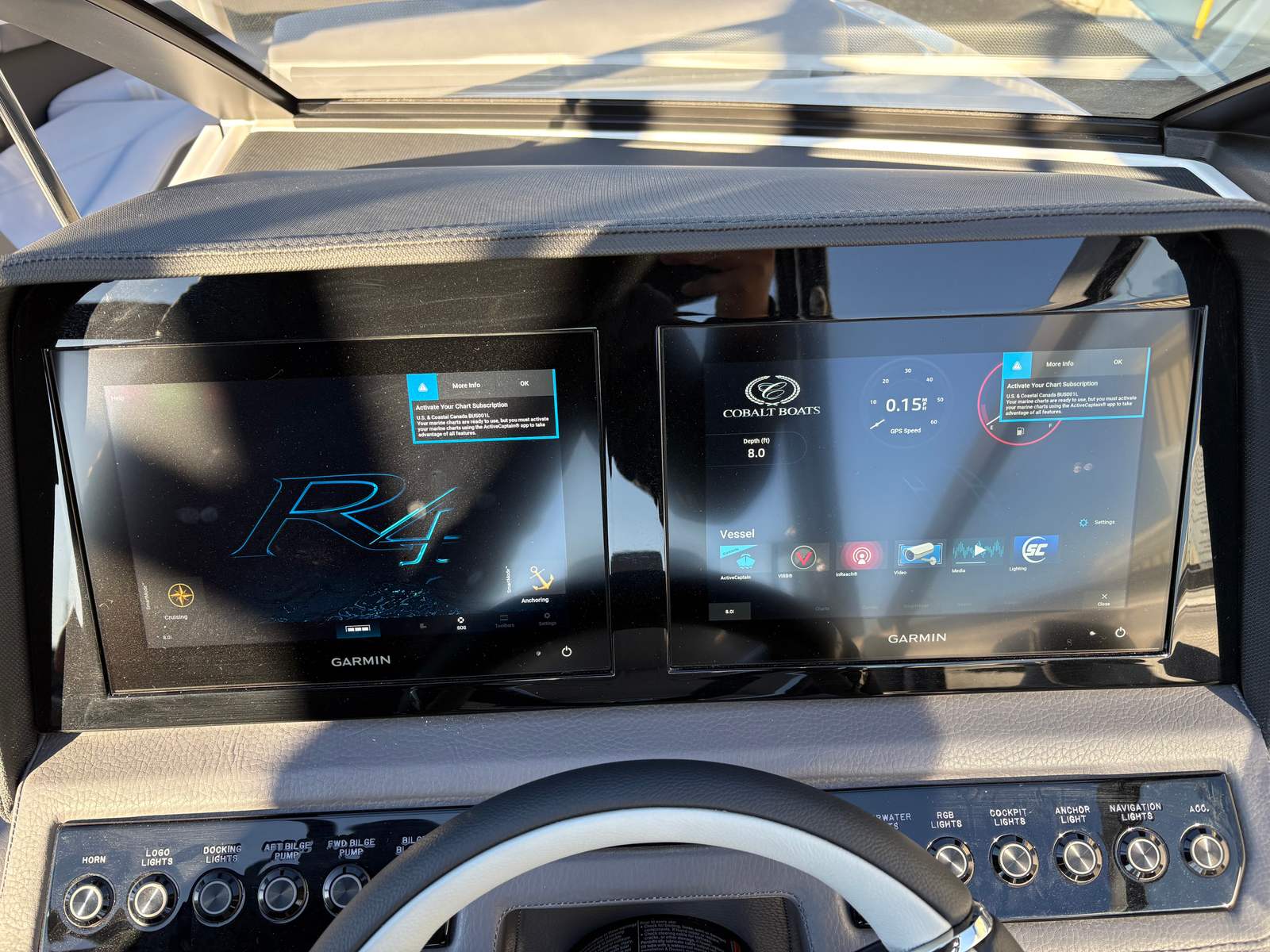 The Cobalt R4 is loaded with special features designed to elevate your boating experience. The exterior showcases the elegant Hull Side in Light Sage, complemented by the Rich Ebony Accent Stripe and Graphite Gray Hull Bottom for a truly distinctive look. The interior, finished in Frost and Slate, offers a plush and welcoming environment for relaxing or entertaining. The Aft Facing Rumble Seat provides a unique vantage point for enjoying the scenery or socializing at anchor, while the Arch E2 Black with Bimini in Ebony offers shade and style for sunny days on the water.Practicality meets innovation with the Battery Maintainer/Charger, ensuring your boat is always ready for action. The Cobalt Letters in Black Satin add a touch of sophistication to the vessel’s branding, and the Docking Lights in Stainless Steel enhance visibility and safety during evening arrivals or departures. Every detail of the Cobalt R4 is thoughtfully designed to maximize comfort, convenience, and enjoyment.
