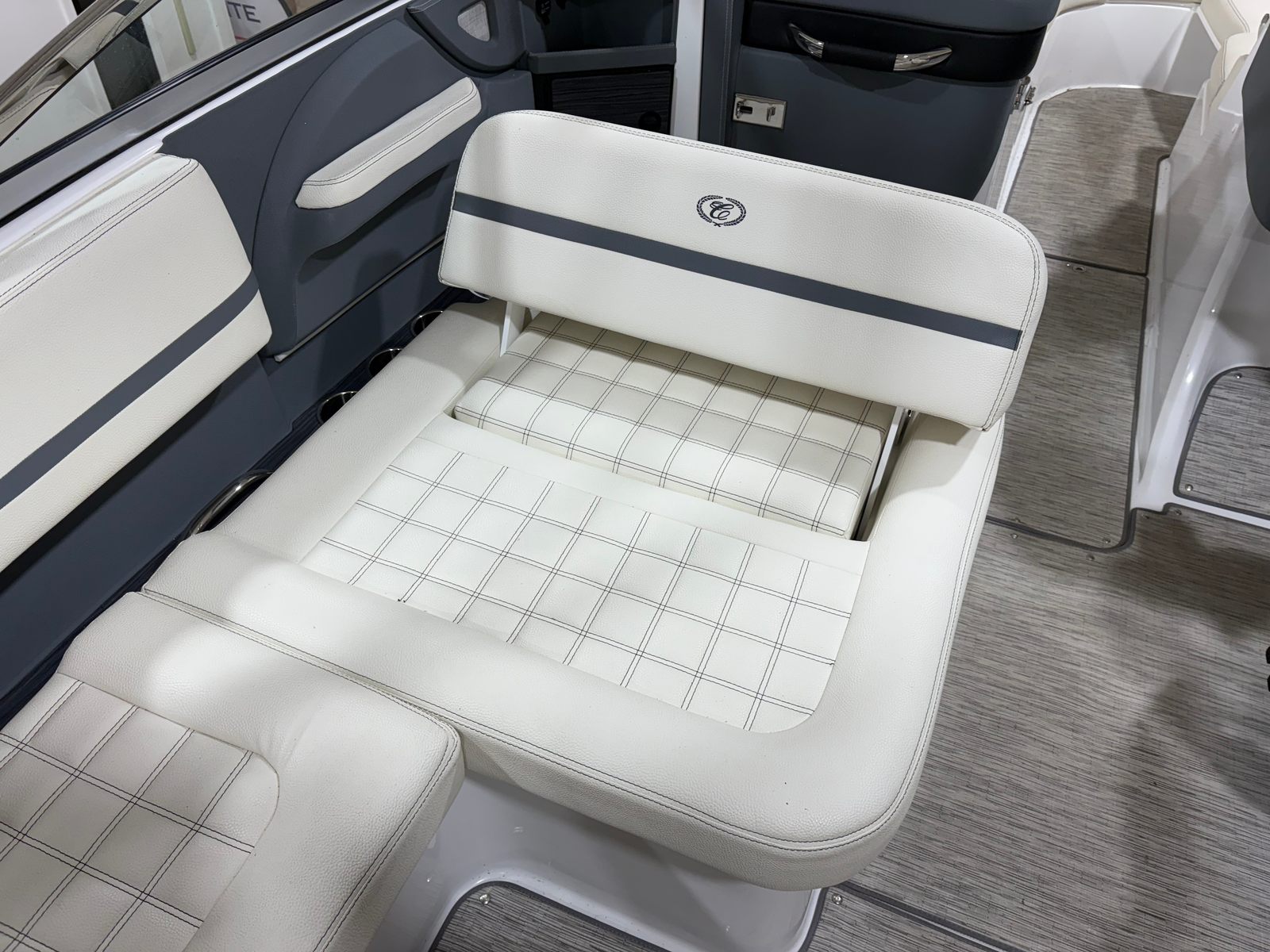 The 2021 Cobalt R5 Bowrider is packed with features designed to elevate your boating experience. Its spacious 25.67-foot layout provides generous seating and lounging areas, making it ideal for entertaining guests or relaxing with family. The ergonomic helm station offers intuitive controls and excellent visibility, ensuring a safe and enjoyable journey every time you set out.The open bow configuration is a hallmark of Bowrider boats, offering easy access to the water and a versatile space for sunbathing, socializing, or simply enjoying the view. The cockpit is designed for comfort, with plush seating and ample legroom. Storage compartments are strategically placed throughout the boat, allowing you to stow gear, snacks, and personal items securely and conveniently.