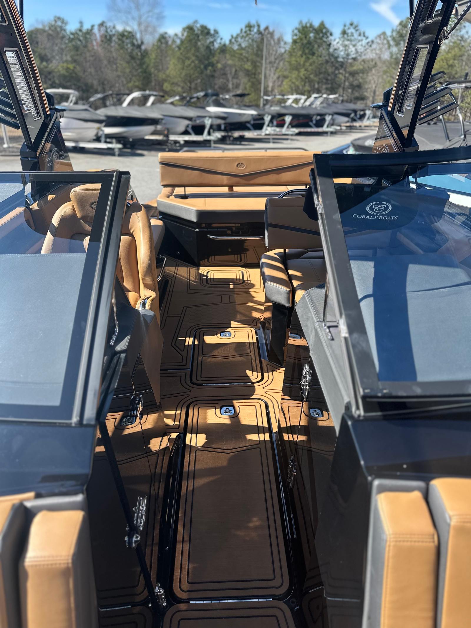 Practicality meets luxury in the Cobalt R6 Surf. The rear facing camera simplifies docking and tight maneuvers, making it easy for boaters of all experience levels to handle the vessel with confidence. The battery maintainer/charger ensures your boat is always ready to go, minimizing downtime and maximizing your time on the water.The folding electric arch and Ebony Bimini provide flexible shade options, while the stainless steel docking lights enhance safety during low-light conditions. The dual Garmin 8610 displays offer intuitive navigation and system monitoring, giving you peace of mind wherever your adventures take you.Storage is thoughtfully integrated throughout the boat, allowing you to stow gear, snacks, and personal items securely. The ergonomic layout makes it easy to access everything you need, so you can focus on enjoying your time on the water.