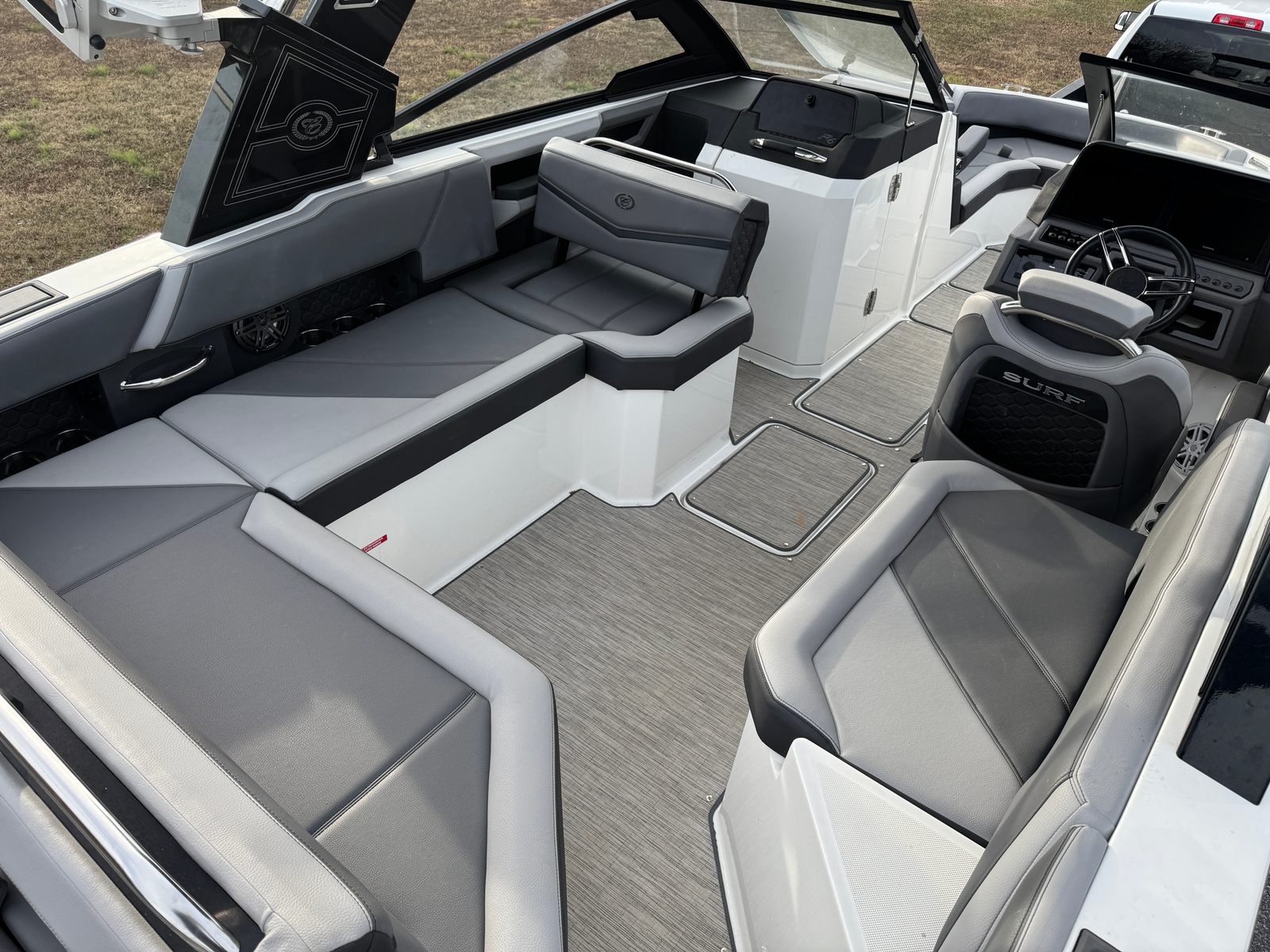 THIS BOAT IS EVEN MORE IMMACULATE IN PERSON. IT IS EQUIPPED WITH THE FORWARD-FACING DRIVE - V8 380 HP VOLVO PENTA MOTOR (ONLY 164 HOURS). JUST ABOUT EVERY OPTION IS CHECKED ON THIS ONE: -SURF GATES -PRISMA TOWER -DUAL GARMIN SCREENS -DIGITAL THROTTLE SHIFT CONTROLS -SWIM PLATFORM W FOLD DOWN STEP -SUNDECK CONVERTIBLE LOUNGER -LED INTERIOR ACCENT LIGHTING RGB -PTM WAKEBOARD RACKS -SNAP IN SEA GRASS FLOORING -JL AUDIO PREMIUM SOUND W/ TRANSOM SPEAKERS & REMOTE -SUBWOOFER -UNDERWATER LIGHTING -WIRELESS CHARGING STATION