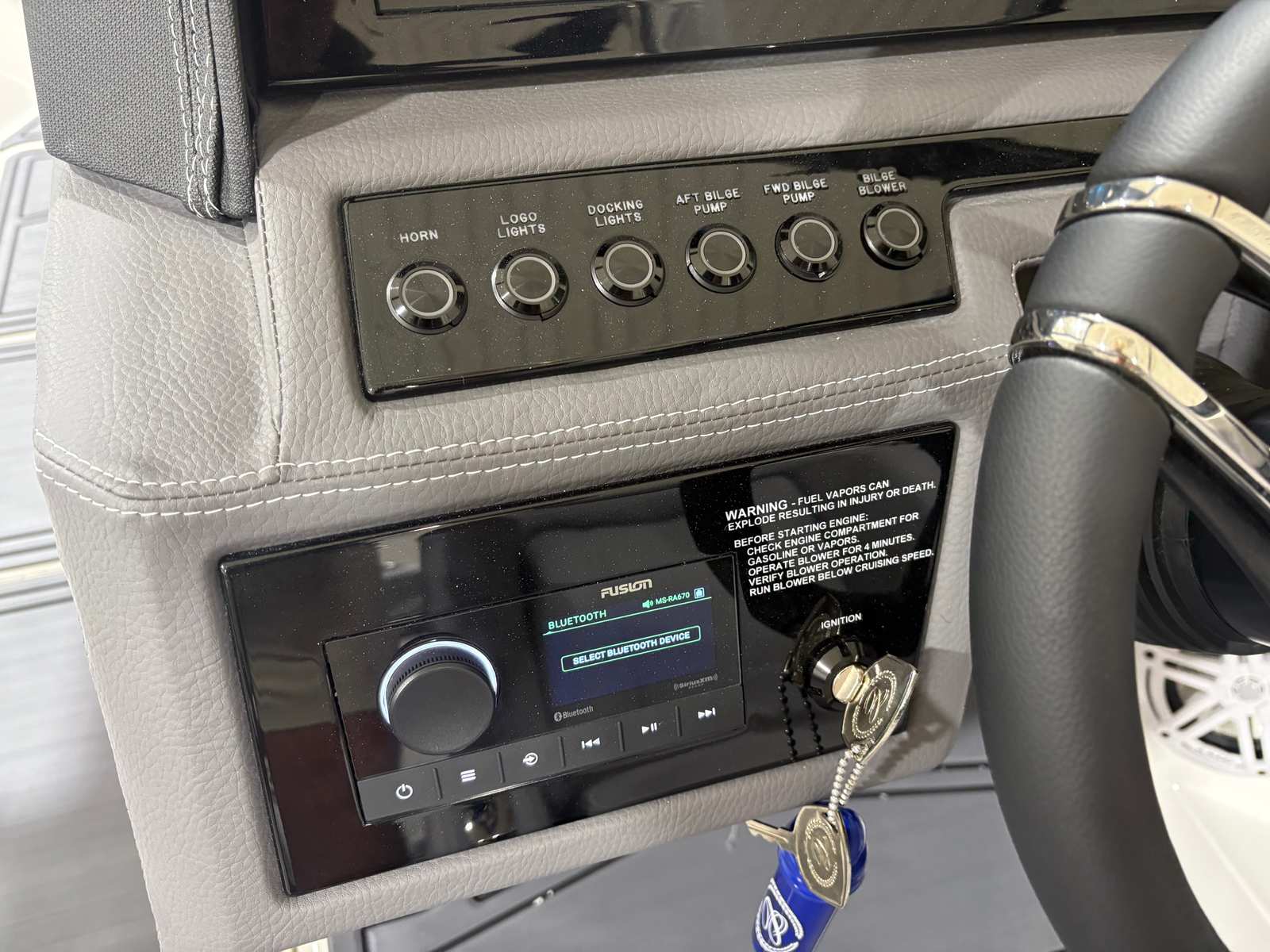 The Cobalt R6 Surf is loaded with premium features that elevate your boating experience. The stainless steel docking lights not only add a touch of elegance but also improve visibility during evening arrivals and departures. The electric arch, Prisma - White (folding) with Navy Bimini, provides shade and protection from the sun while maintaining a sleek profile. The glass cockpit, featuring dual Volvo 8610 displays, offers intuitive control and navigation, ensuring you stay informed and in command at all times.Inside, the Frost, Slate, and White interior creates a comfortable and stylish environment for passengers. LED interior accent lighting with R/G/B options allows you to set the mood for any occasion, while the mooring cover with Prisma folding arch protects your investment when the boat is not in use. The premium sound system, complete with transom speakers and remote, delivers crystal-clear audio throughout the vessel, perfect for entertaining guests or enjoying your favorite tunes while cruising. The Sof-Trac mat in the cockpit and bow, finished in Gray/Ebony, provides a soft, non-slip surface for added comfort and safety.