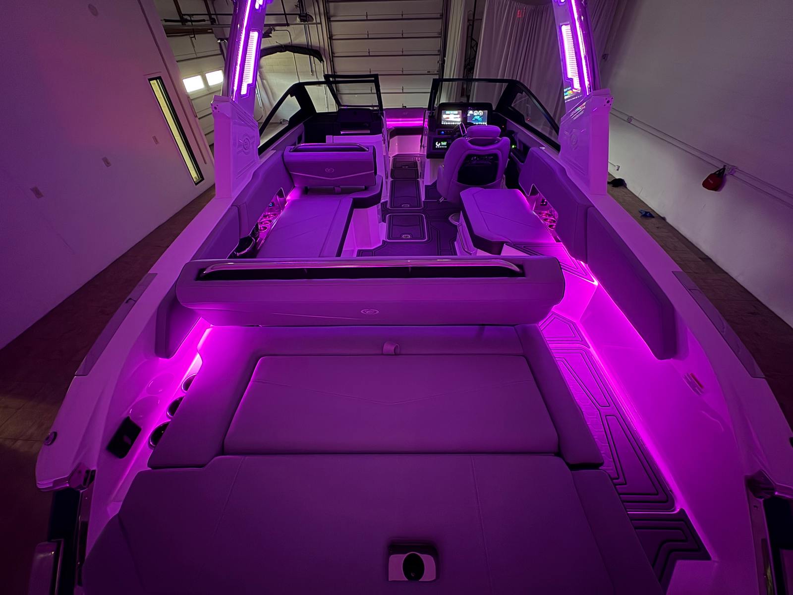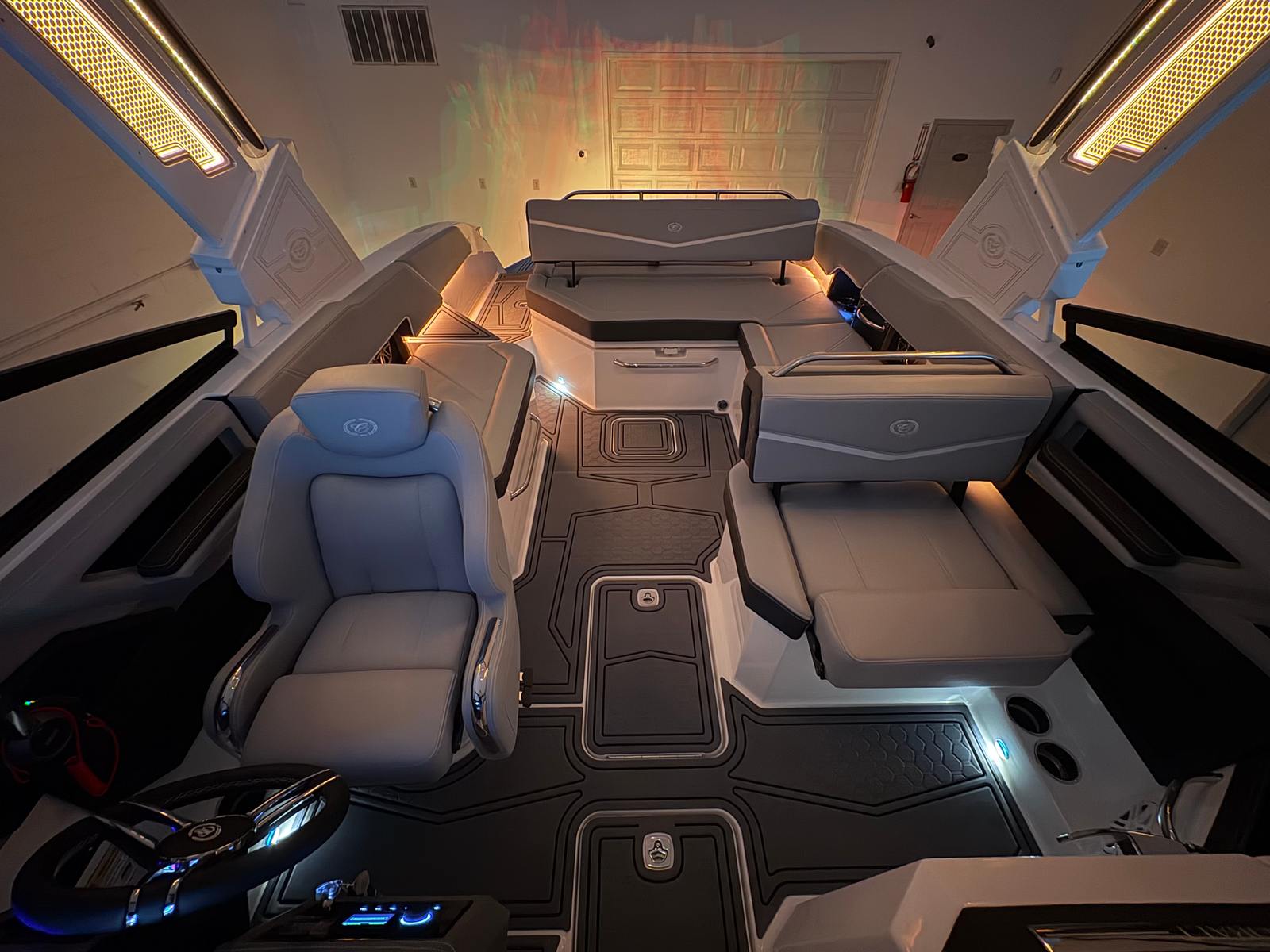 The Cobalt R6 Surf is the perfect companion for a variety of on-water adventures. Imagine hosting family outings, where everyone can relax in the spacious bow and cockpit, enjoying the scenery and each other’s company. For watersports enthusiasts, the boat’s powerful engine and forward drive system make it a top choice for wakeboarding and surfing, delivering the performance needed to catch the perfect wave.Fishing trips are made more enjoyable with the boat’s ample space and comfortable seating, while luxury getaways are elevated by the premium sound system and stylish interior. Whether you’re planning a day of fun in the sun, a sunset cruise, or a weekend escape, the R6 Surf adapts to your needs and exceeds expectations.