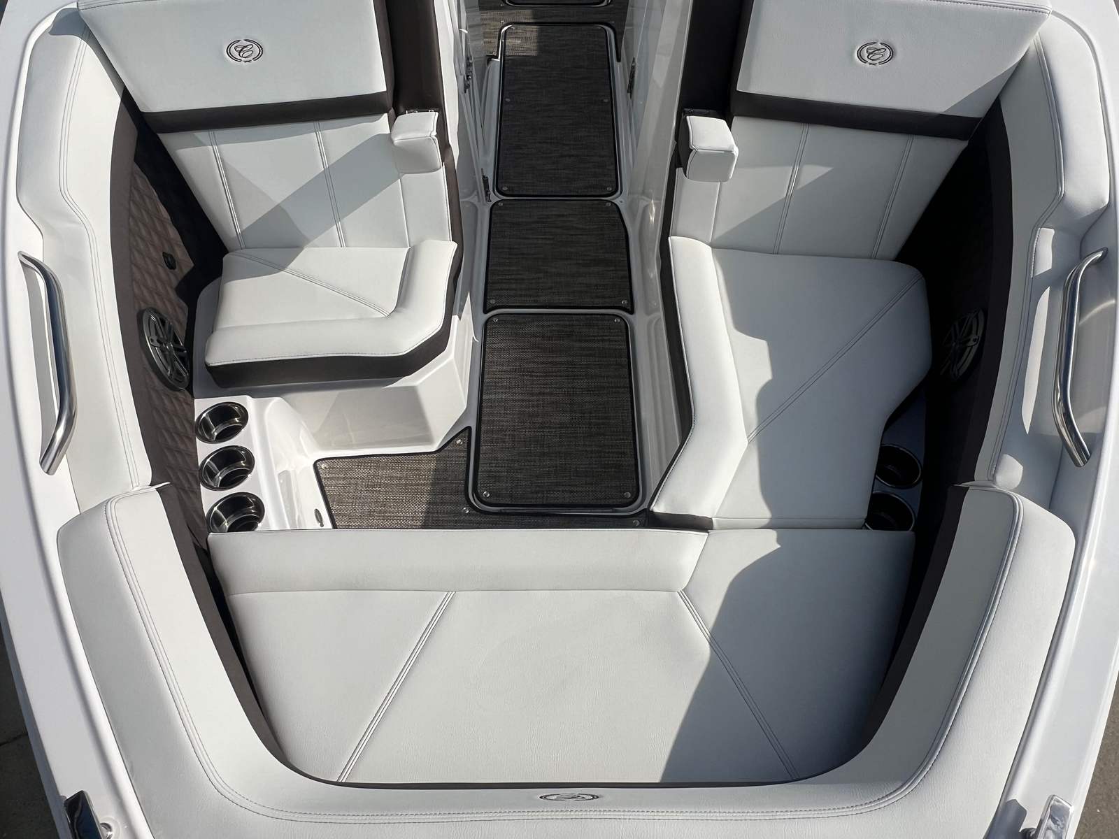Beyond its impressive style and performance, the Cobalt R6 offers practical benefits that make ownership a breeze. The battery maintainer/charger helps keep your systems in top condition, reducing maintenance hassles and ensuring your boat is always ready for spontaneous adventures. The mooring cover for the folding arch provides added protection from the elements, preserving the boat’s pristine appearance.The R6’s manageable length makes docking and storage straightforward, whether you are keeping the boat at a marina or trailering it to new destinations. The durable seagrass flooring is easy to clean and stands up to heavy use, while the advanced navigation system simplifies route planning and enhances safety. These practical features combine to create a bowrider boat for sale that is as easy to own as it is enjoyable to use.